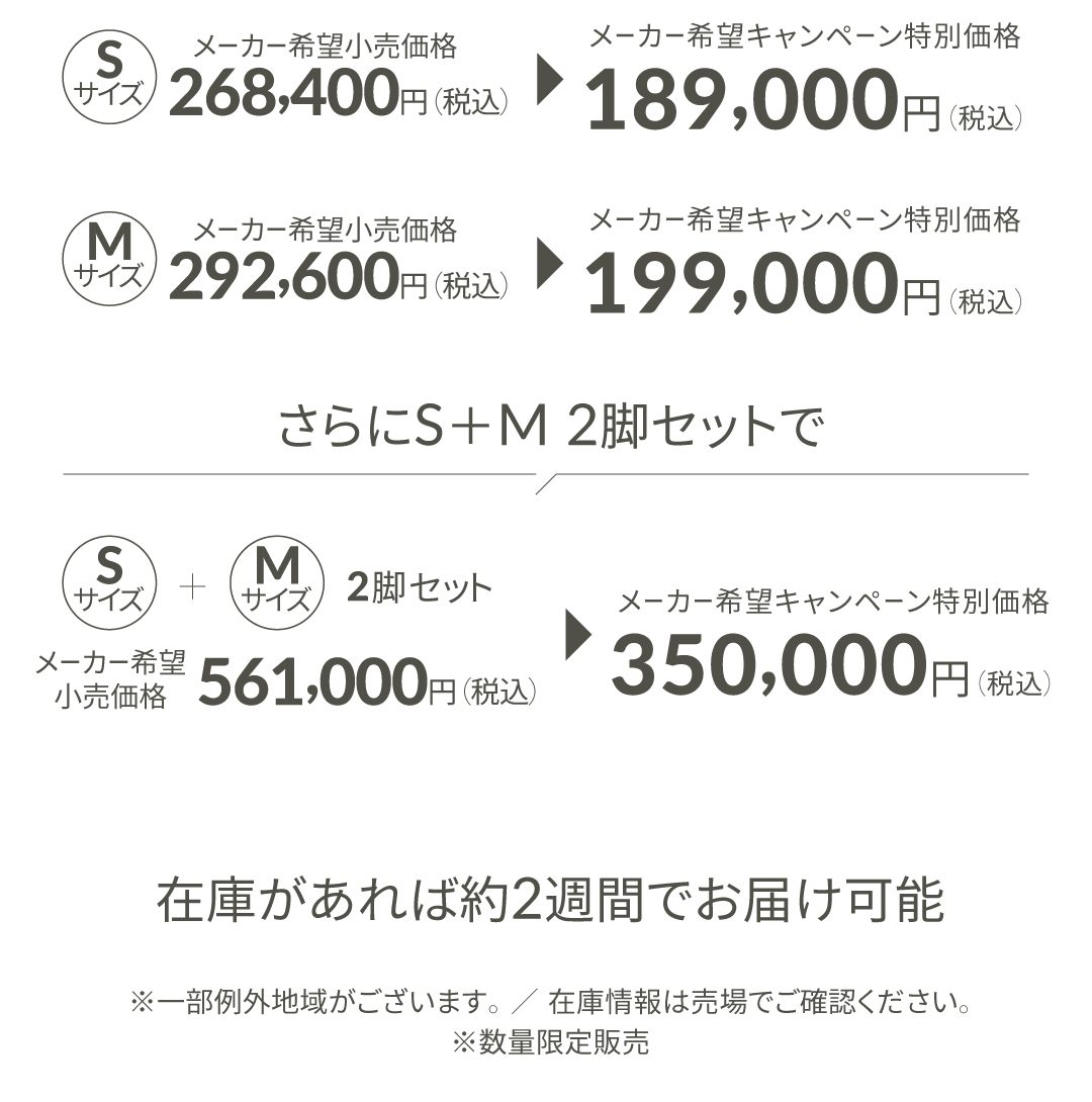 でご提供 - さらに2脚セット(Sサイズ+Mサイズ)で期間限定の超特別価格