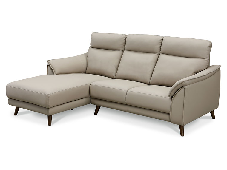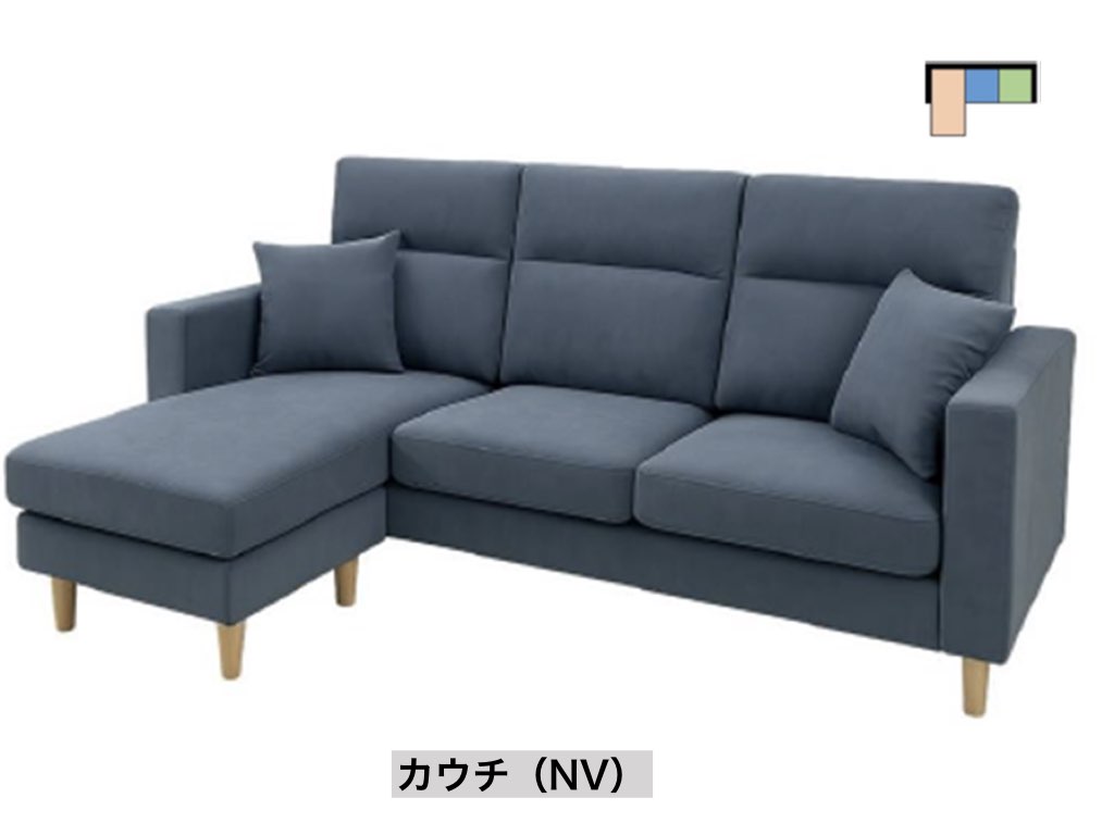 ふんわり優しく包み込まれる感覚の気持ち良いソファ。高コスパを実現するために「カウチ型のみのサイズ展開」となっております ( 写真はグレー色です )。カウチソファとは、ゆったり脚が伸ばせるL字型のソファのことです。