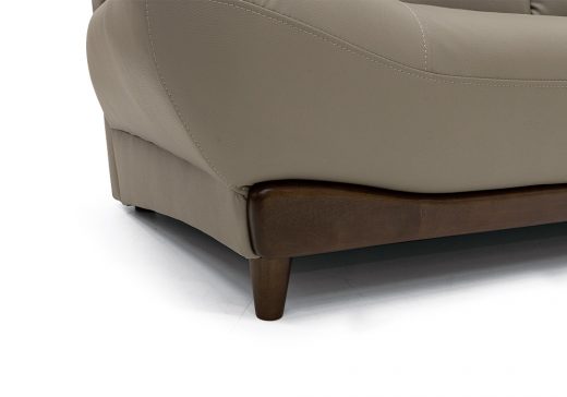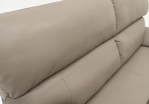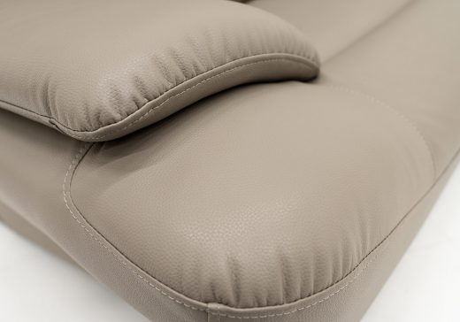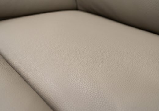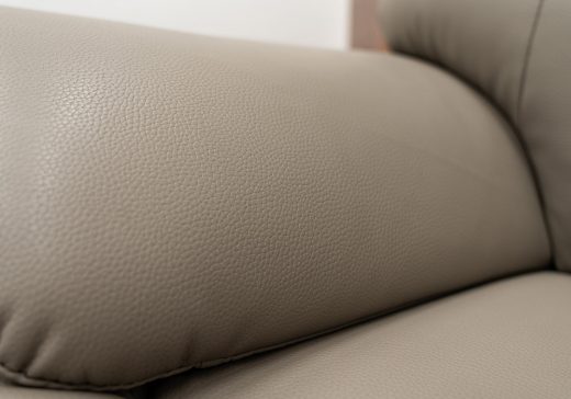 リアルレザーのような程良いツヤ・シワ感に、剛性を併せ持つフェイクレザーを使用したソファ。