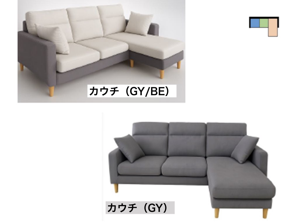 L字型(座って右カウチ。左にもできます)