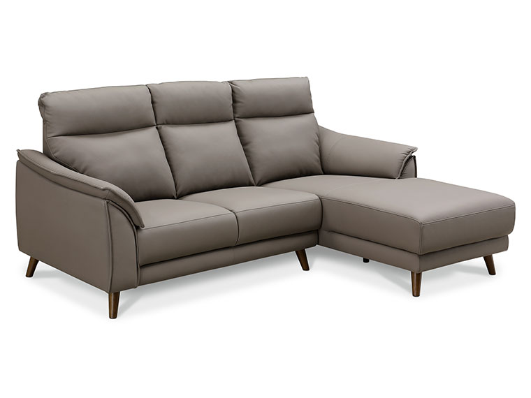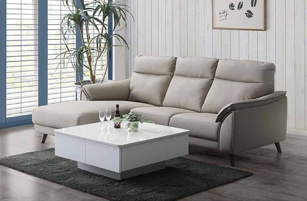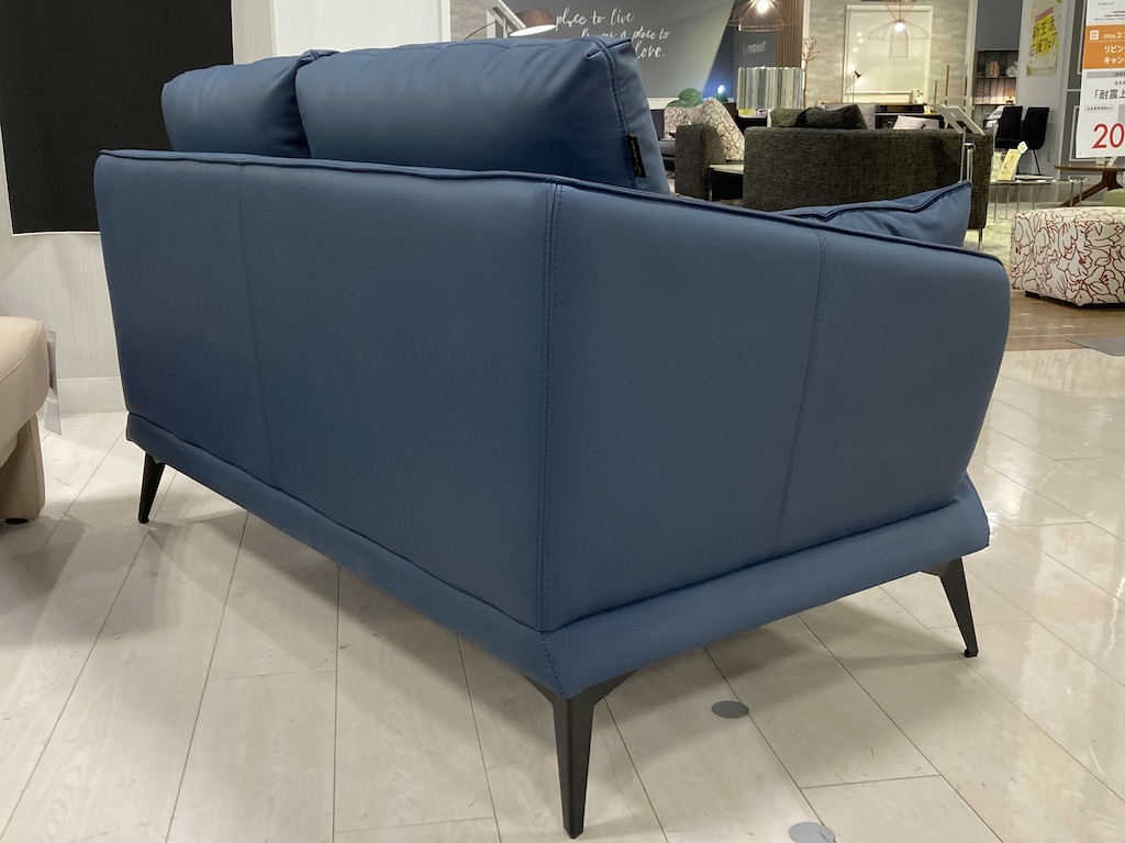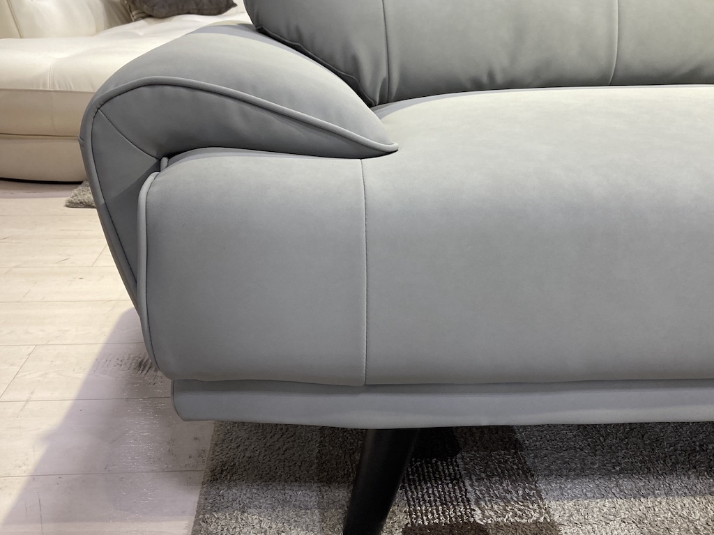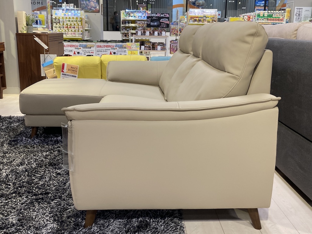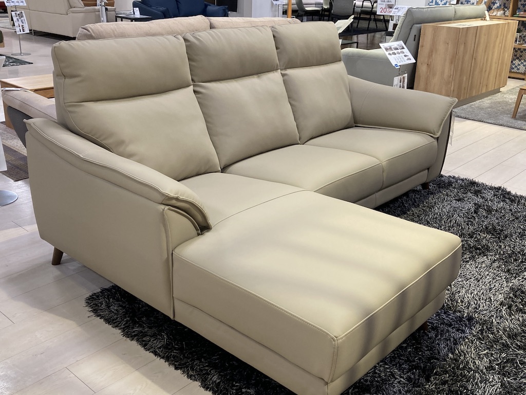 優しい肌触りで綺麗が長く続く本革成分を配合した新合成素材のソファです。体をしっかり支える少し硬めのすわり心地です。