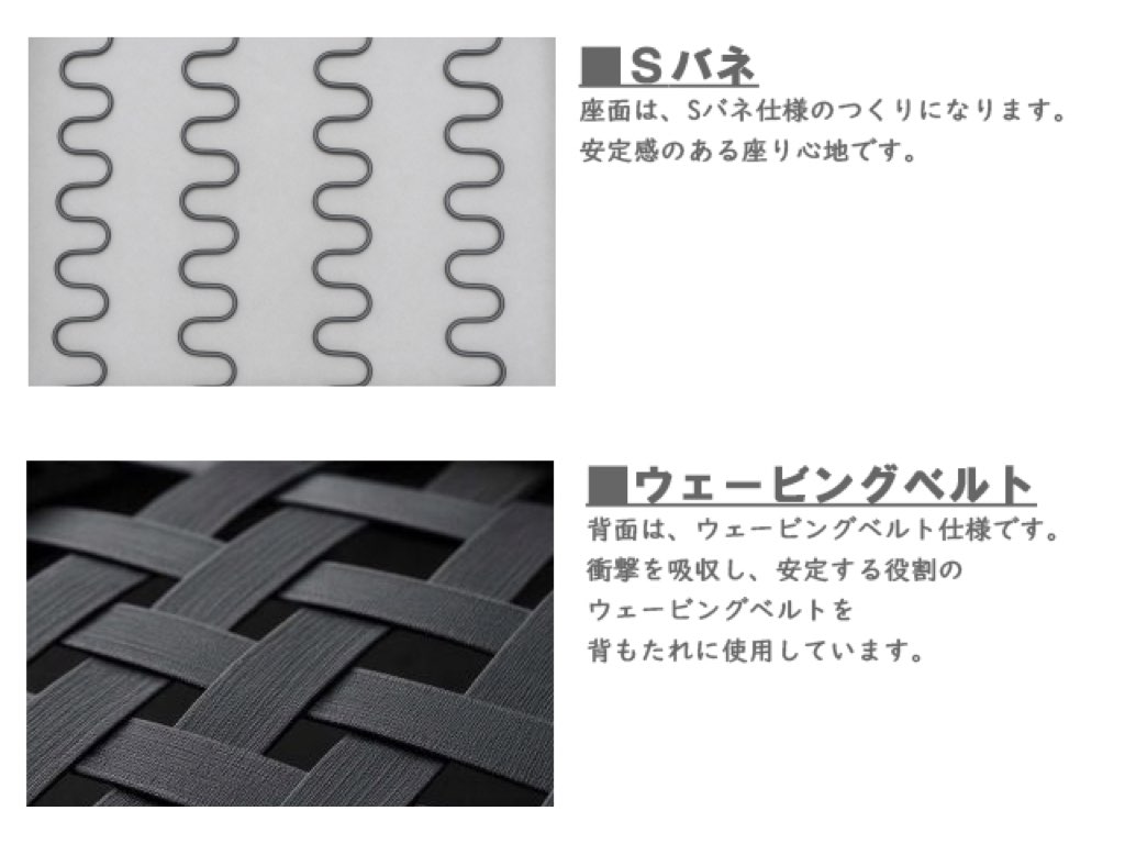 - 座面は、Sバネ+ポケットコイル構造でしっかりとした座り心地を実現。