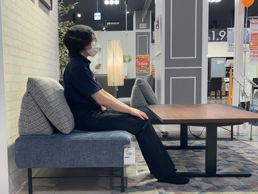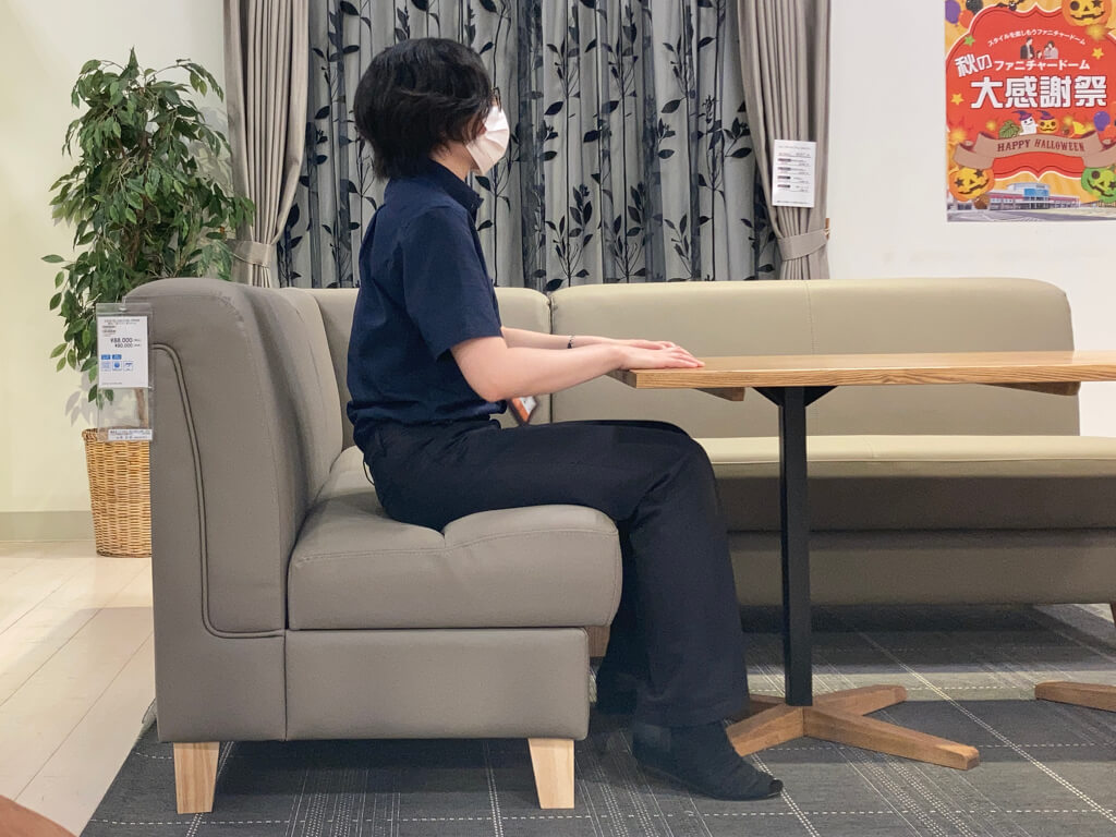 LD兼用ソファでは食事のしやすさを考えて座面は「固め」、座面の奥行きは「浅め」に作られています。