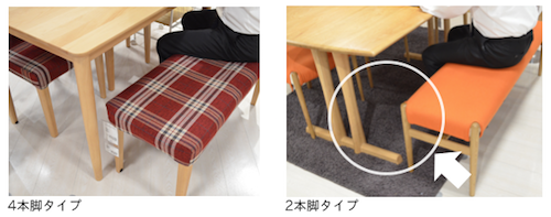 ダイニングテーブルは脚の形状によっても使い勝手がかわってきます。