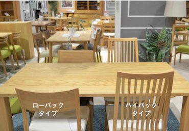 チェアの背もたれの高さで部屋の広さの印象が大きく変わります。どちらがより好みにあっているでしょうか。