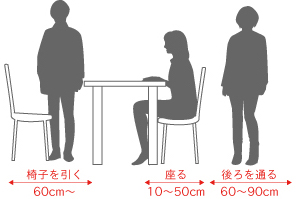 テーブルと椅子を置いた時にこれだけのスペースが確保できるかを確認しましょう。