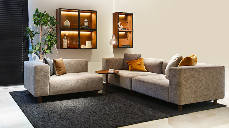 豊富なバリエーションのソファパーツをもち、空間に応じて自由な組み合わせができるシステムソファ。