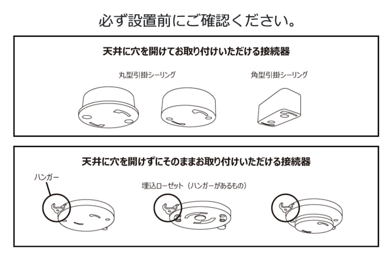 また、配線器具はあっても天井の強度が十分でない場合は取り付けが出来ません。