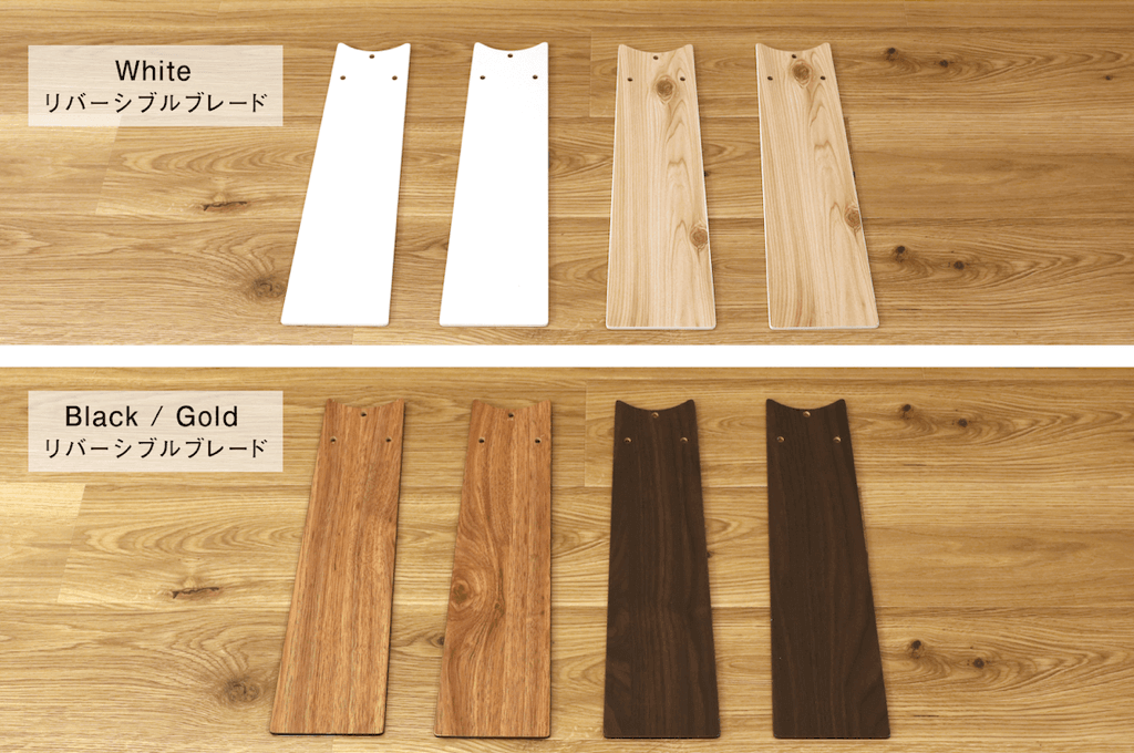 羽はリバーリブルタイプなのでお好みに応じた色をお楽しみいただけます。電球別売り/リモコン付き。カラーはブラックとホワイトの2色。