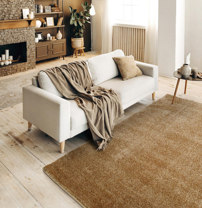 染料を贅沢に使い丁寧に染め上げられた深みのあるシックなカラー。なめらかな手触りのナイロンをたっぷり使用した高品質なラグ。