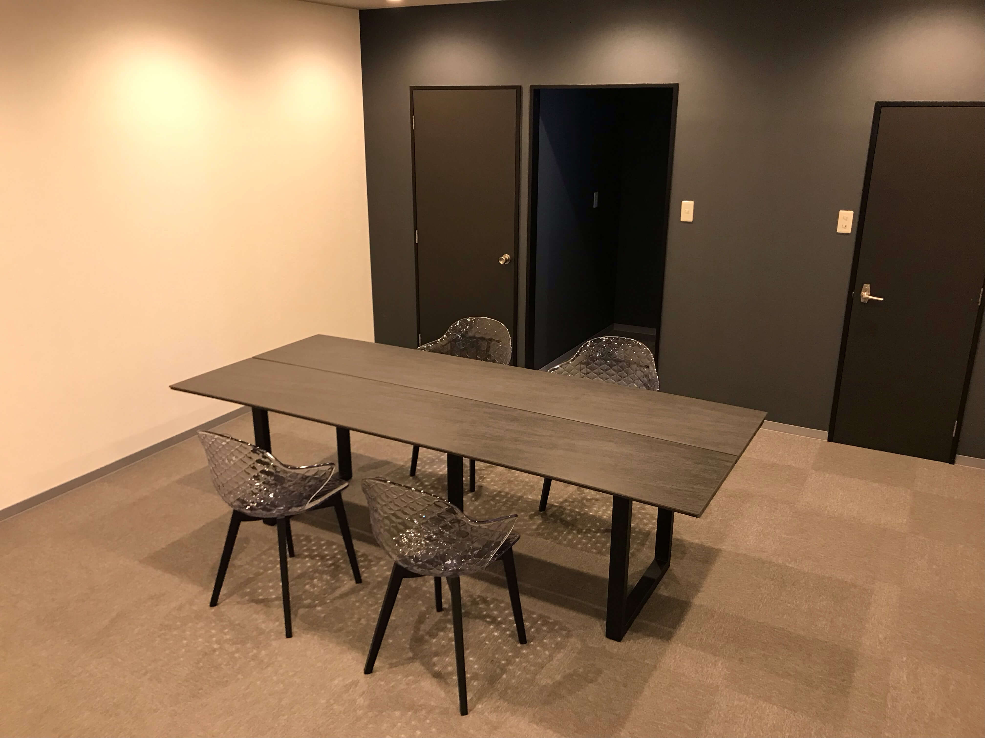 セラミックテーブルは雰囲気も良く、傷にも強いので、ご家庭だけでなくこういった事務所での使用もオススメです♩