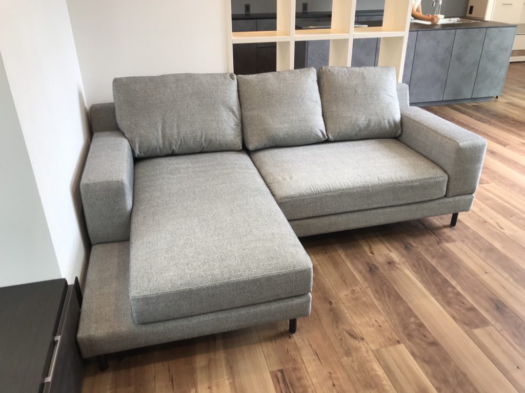 ソファは、グレーのシェーズソファを。