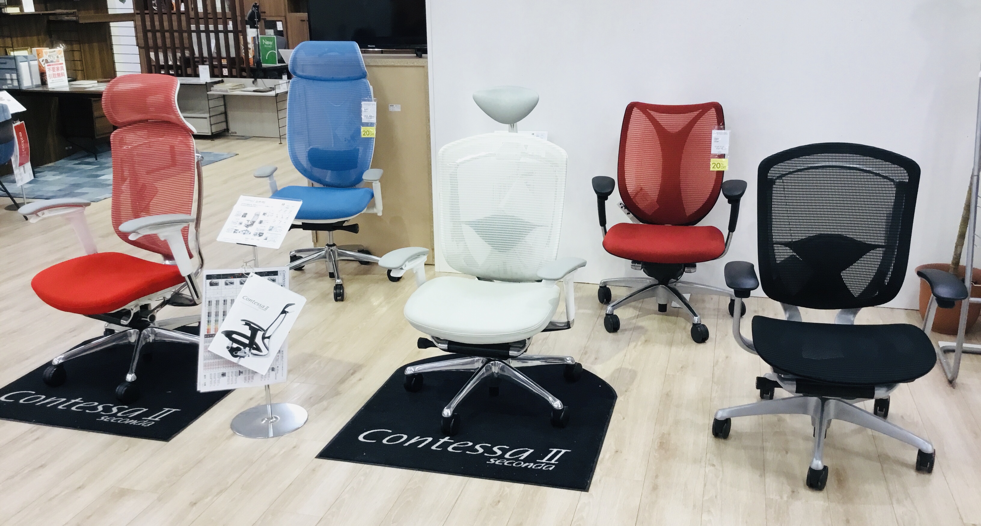 ⬇︎そして、長時間座っていても疲れにくいオフィスチェア!こちらは座面はウレタンクッションで背もたれがメッシュの仕様になっています。
