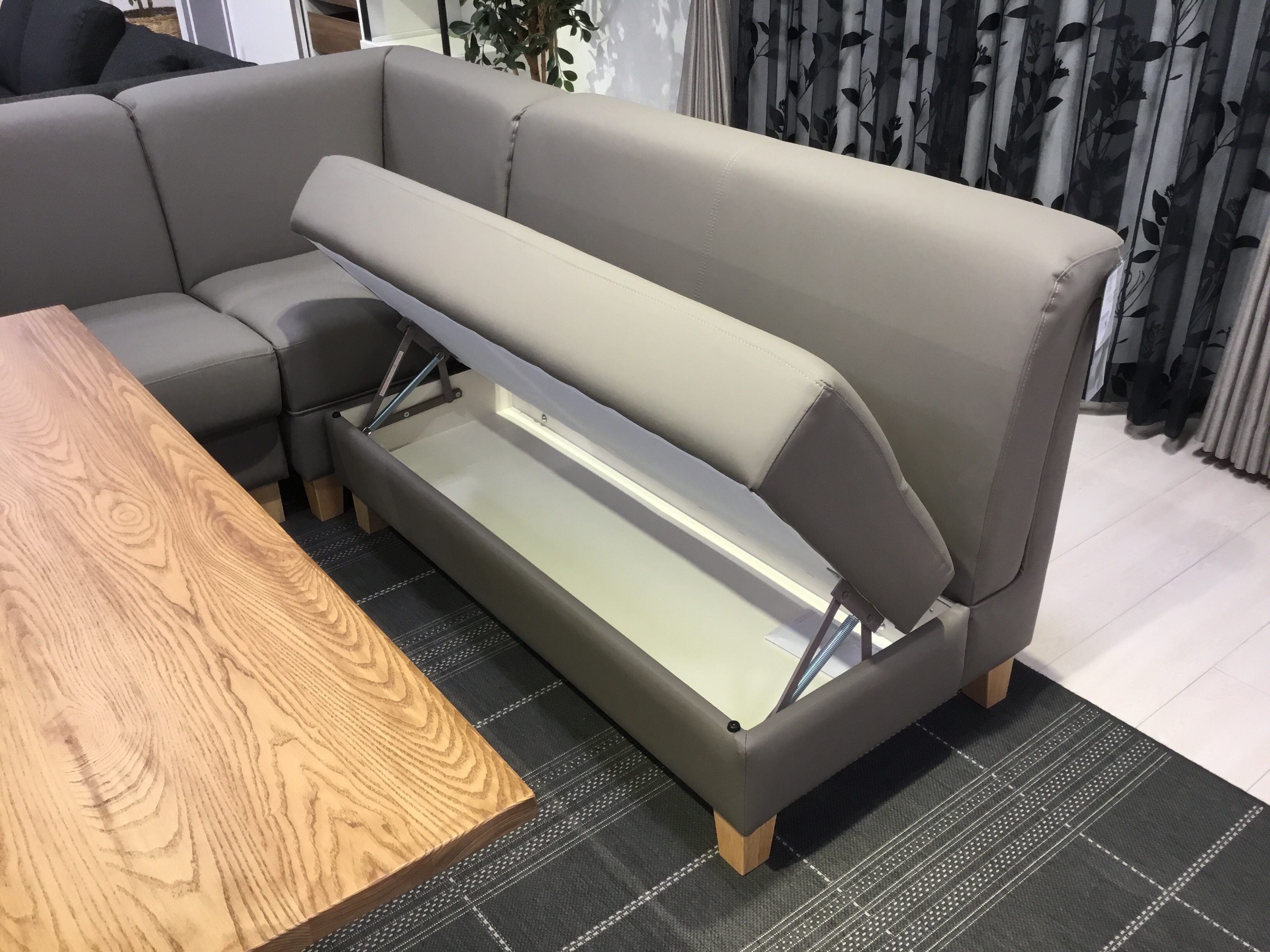 座面は通常のソファより少し硬めにつくられているので、お食事する際も座りやすくなっています。