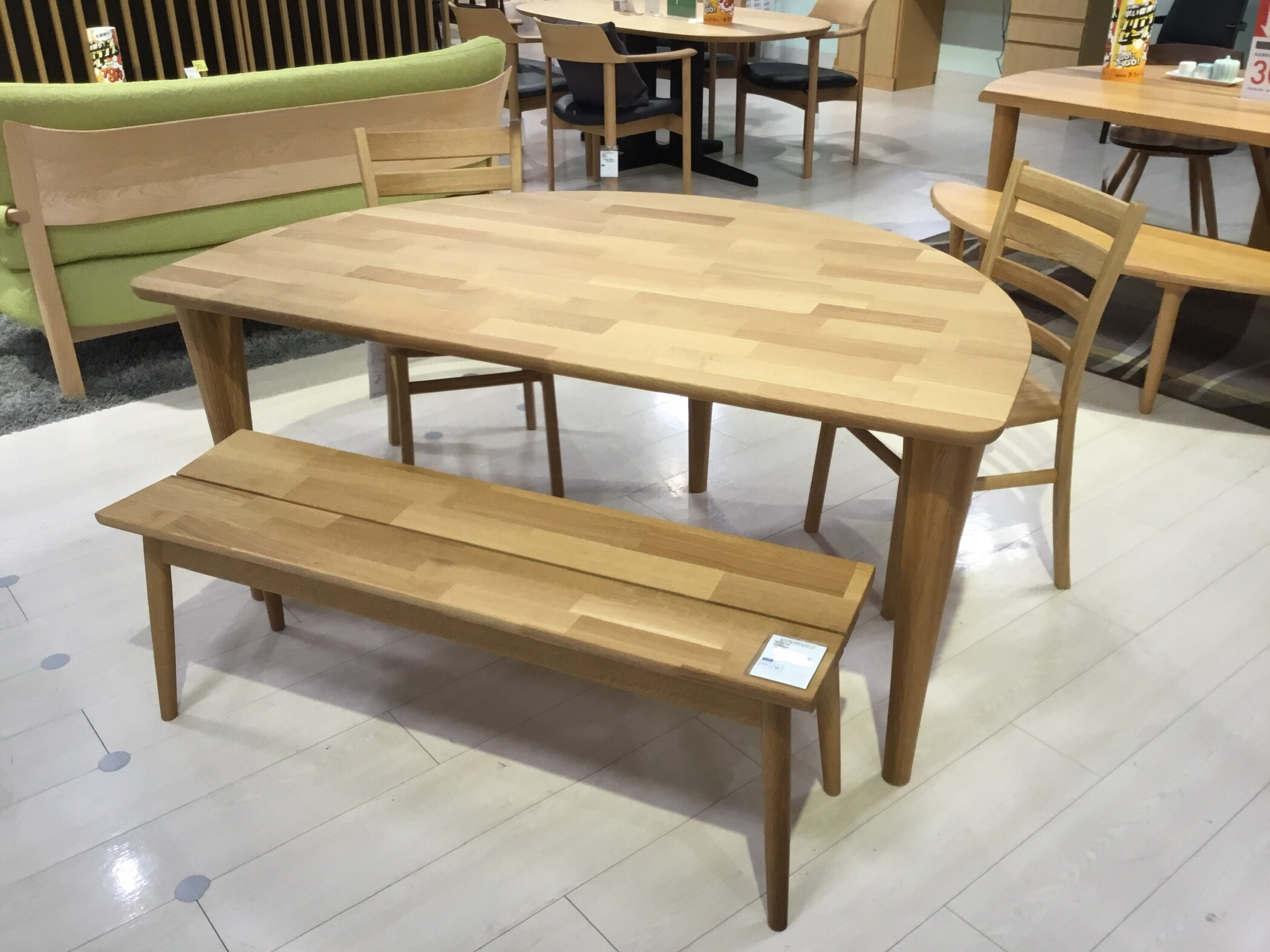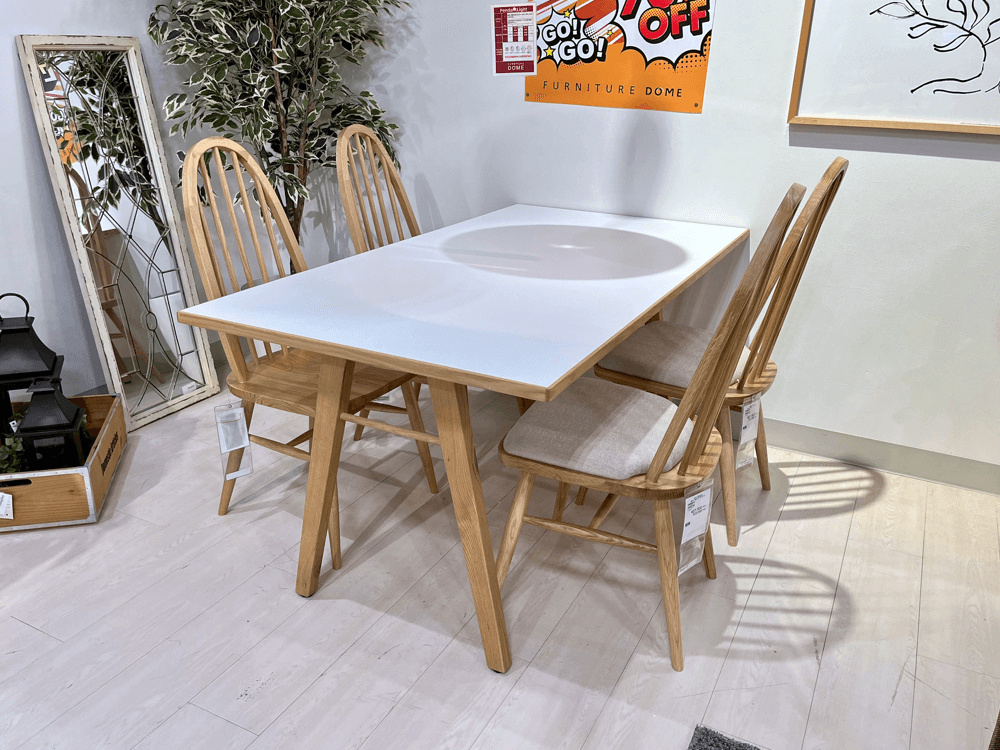 ホワイトオークの集成材を使用したダイニングセット。