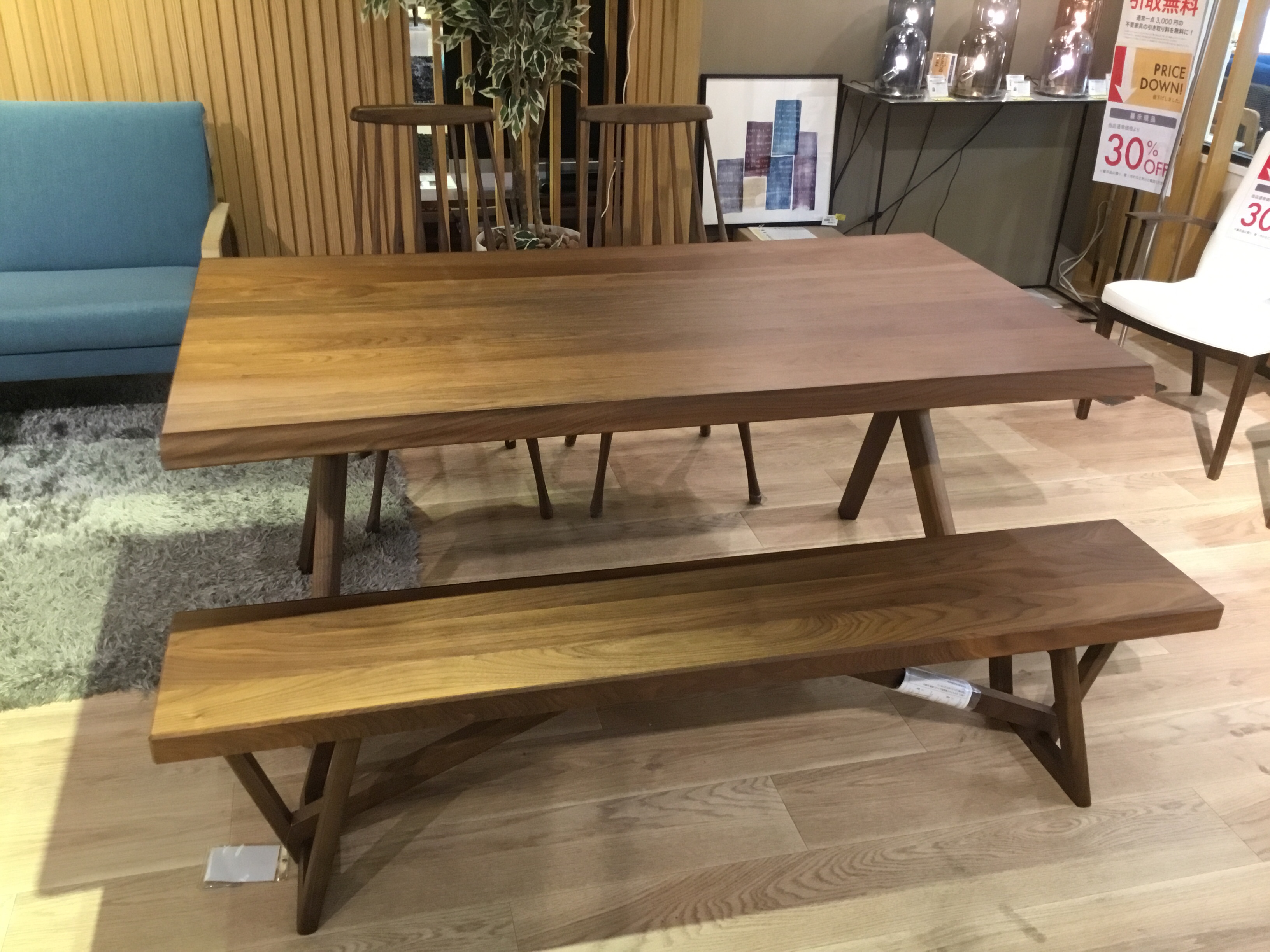 幅165cm、ウォールナット材のダイニングセット。