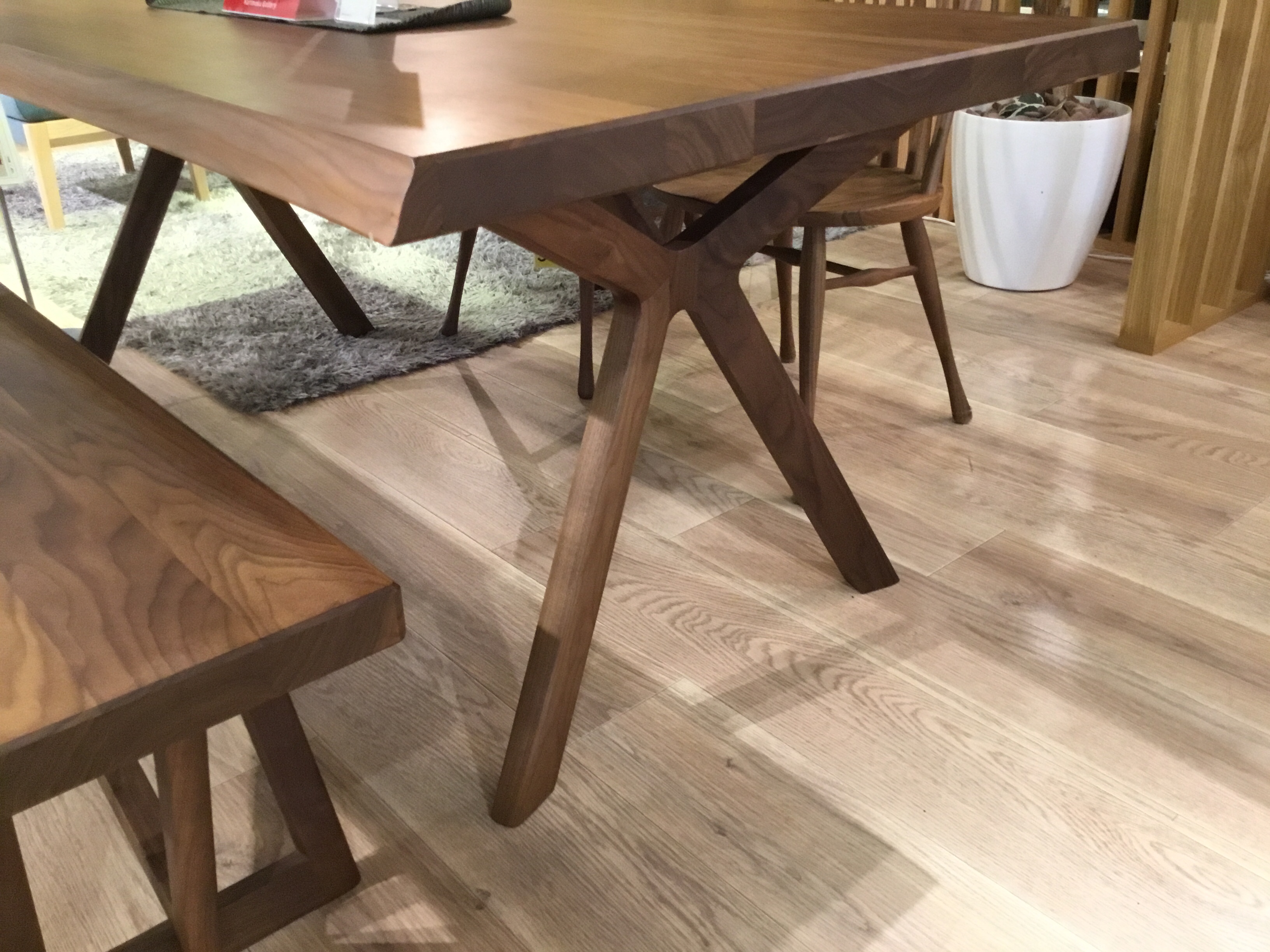 ウォールナット材を使った一枚板風のダイニングテーブル。