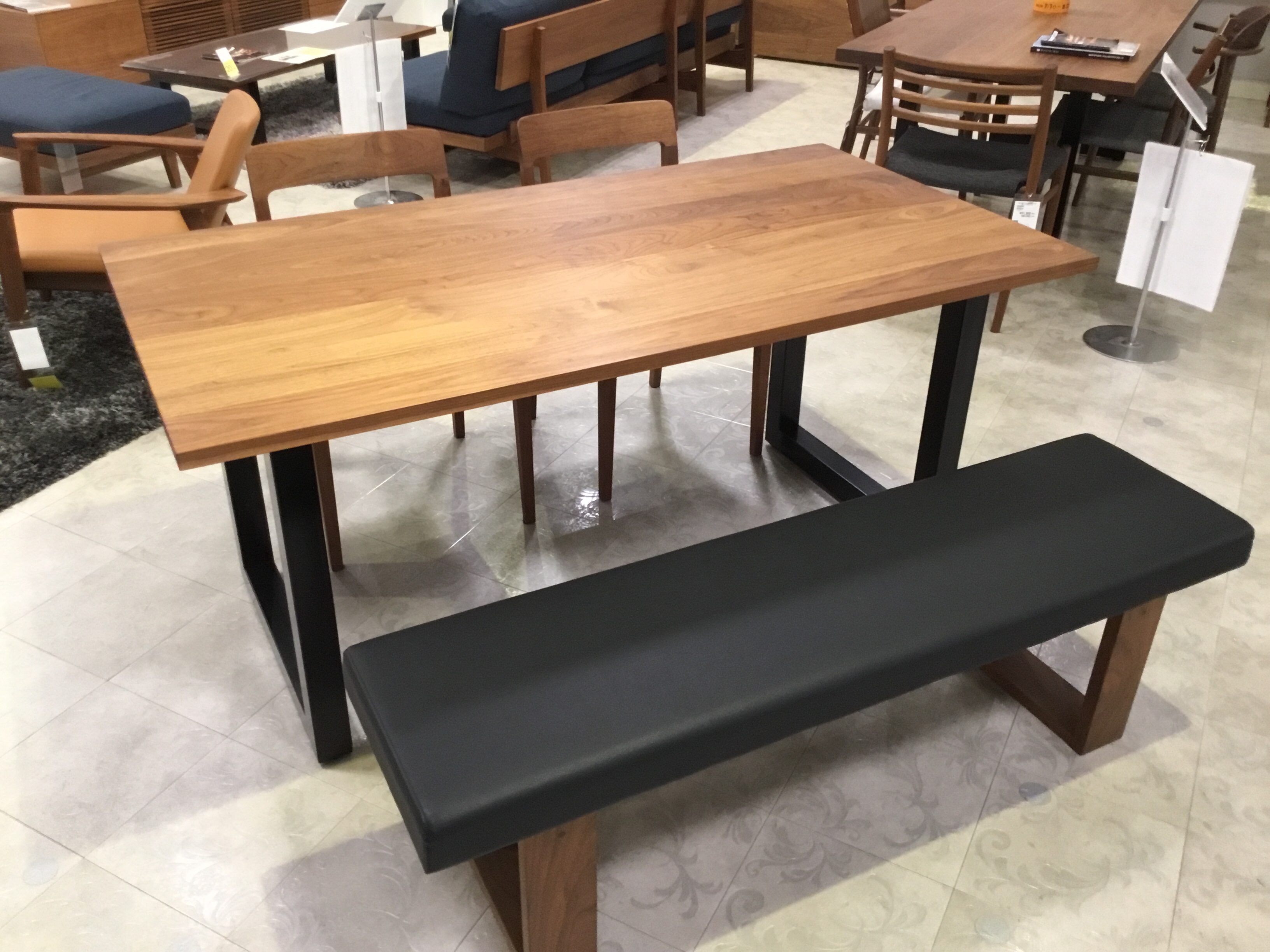 幅160cm、ウォールナット天板にスチール脚がかっこいいダイニングセット。