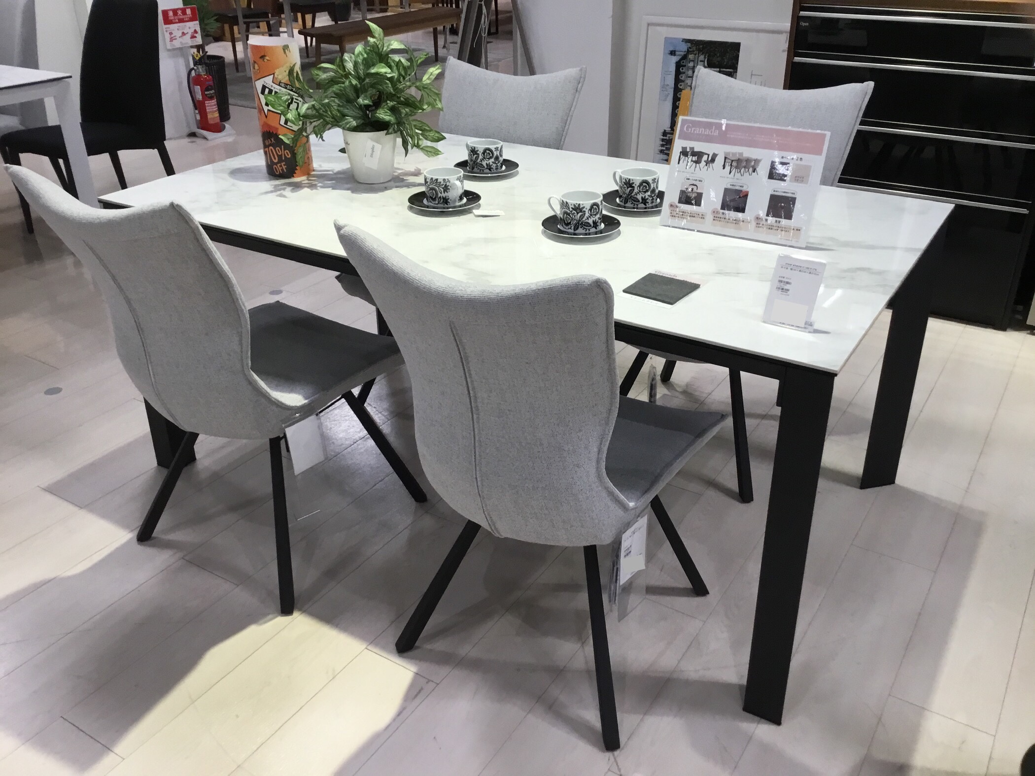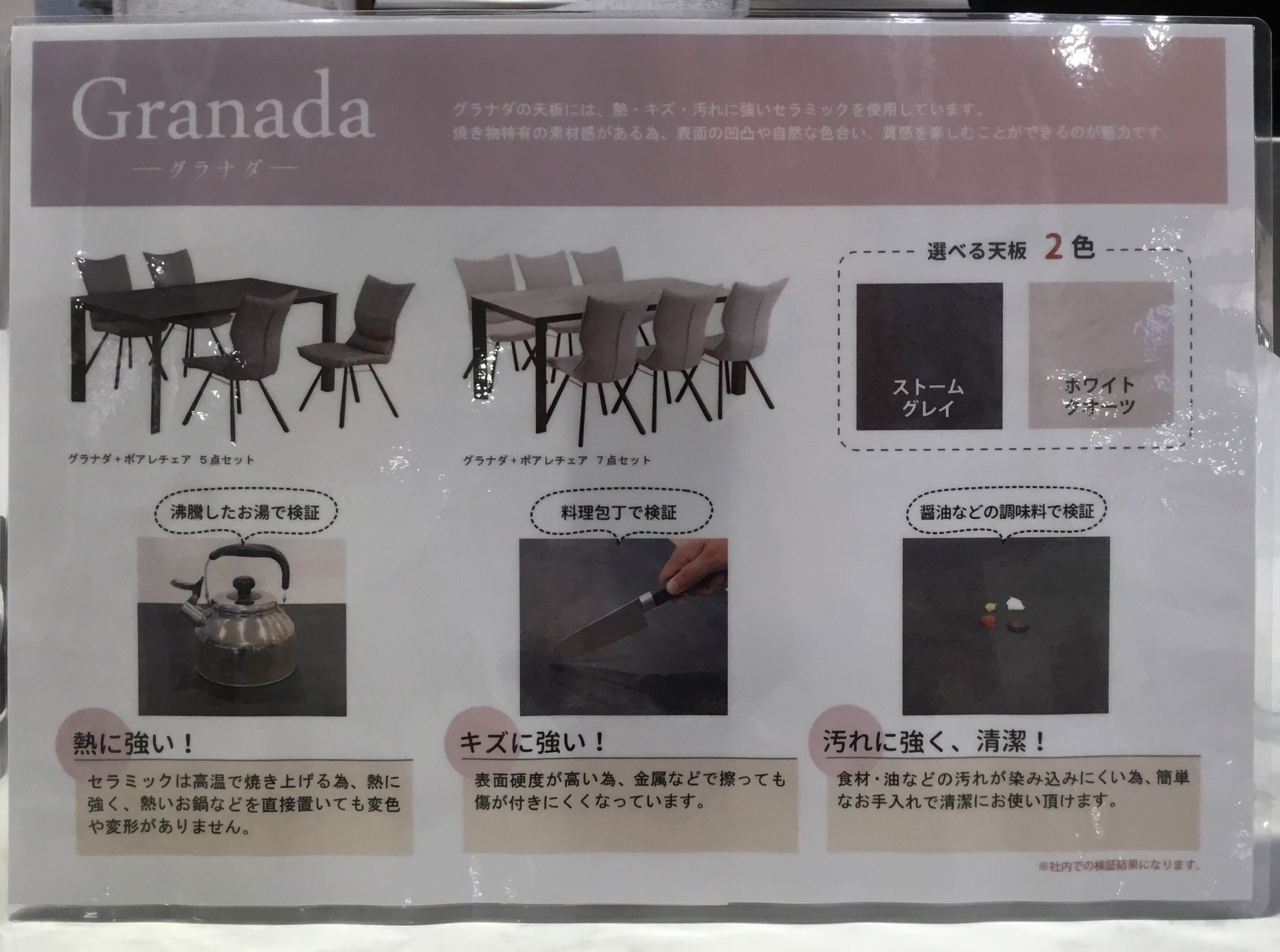 耐熱性・耐摩耗性・耐水性に優れたセラミック天板のダイニングテーブル“グラナダ”。