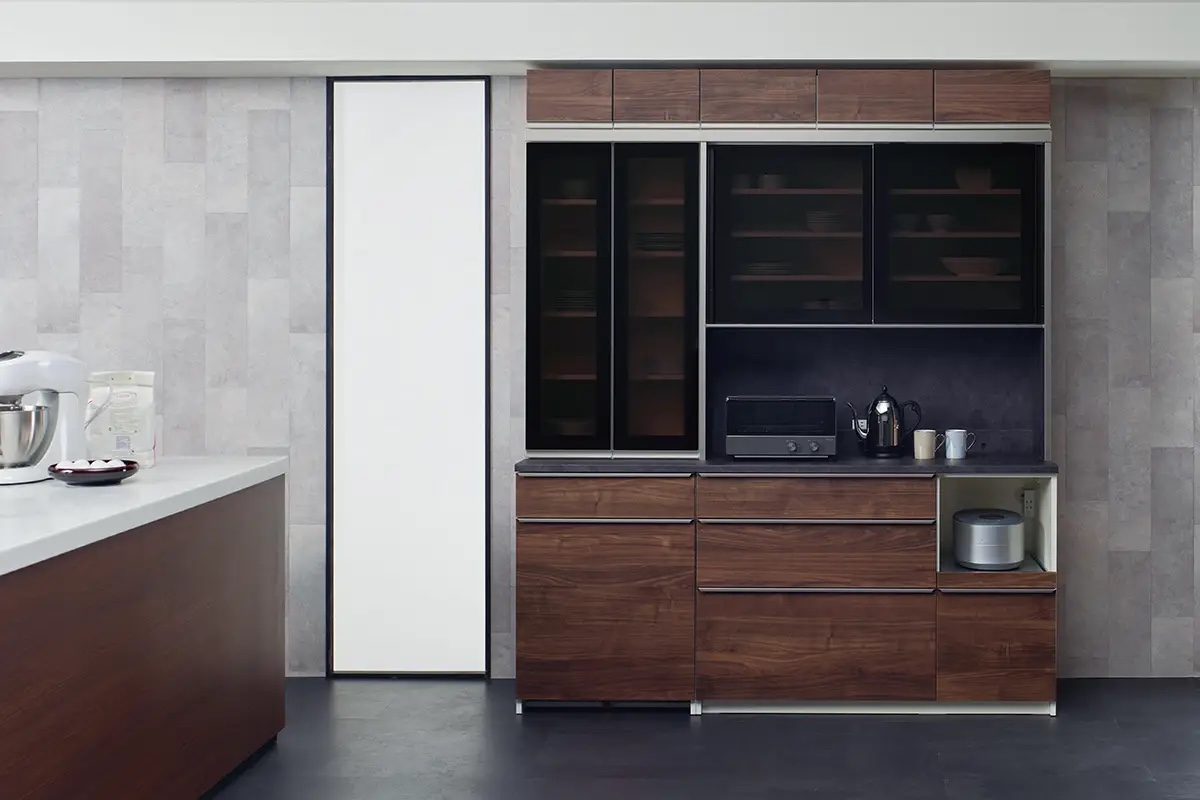 多様な収納アレンジが可能な、スタンダードモデルの食器棚です。
