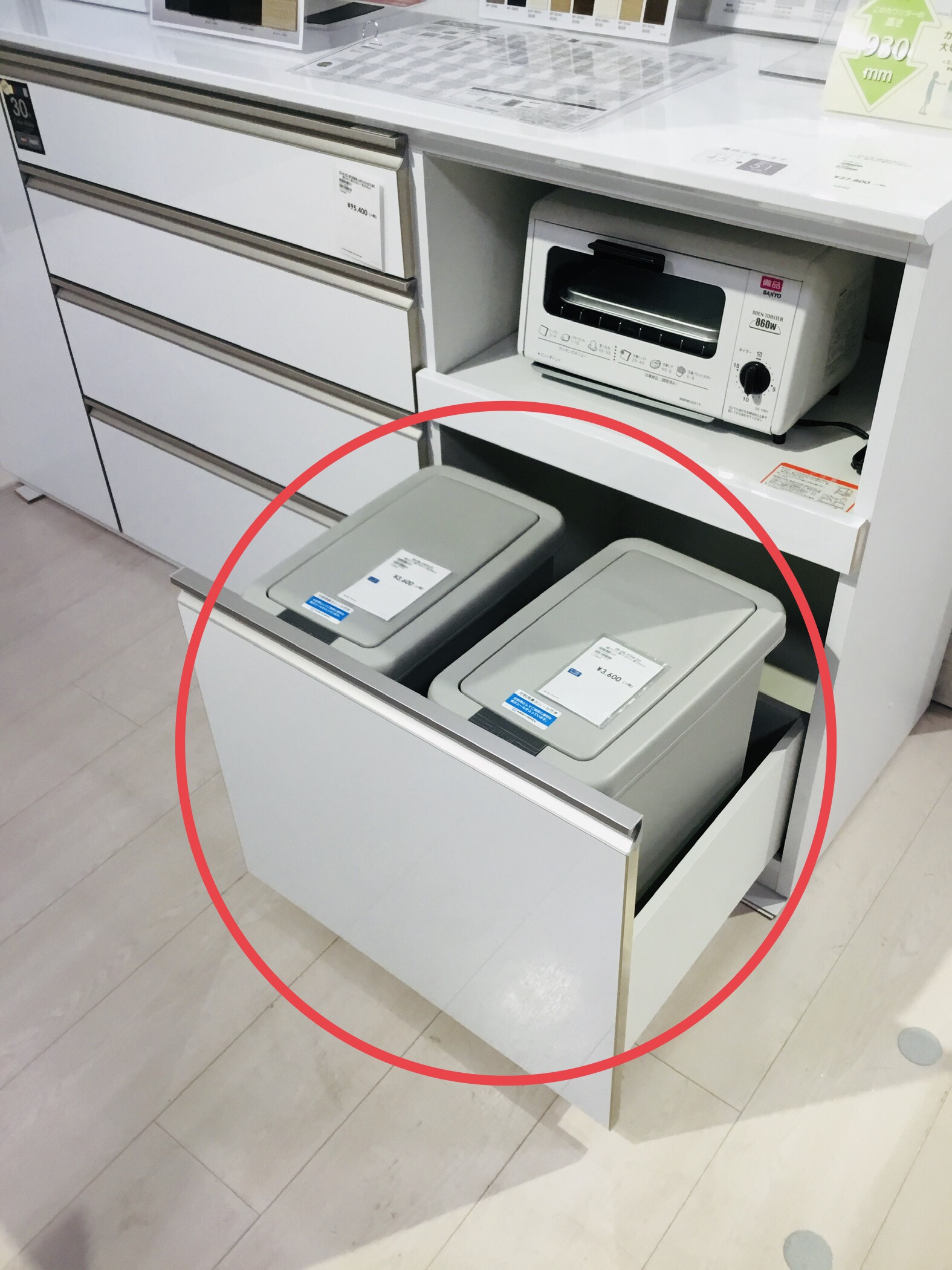 ゴミ箱が入る引き出しです。