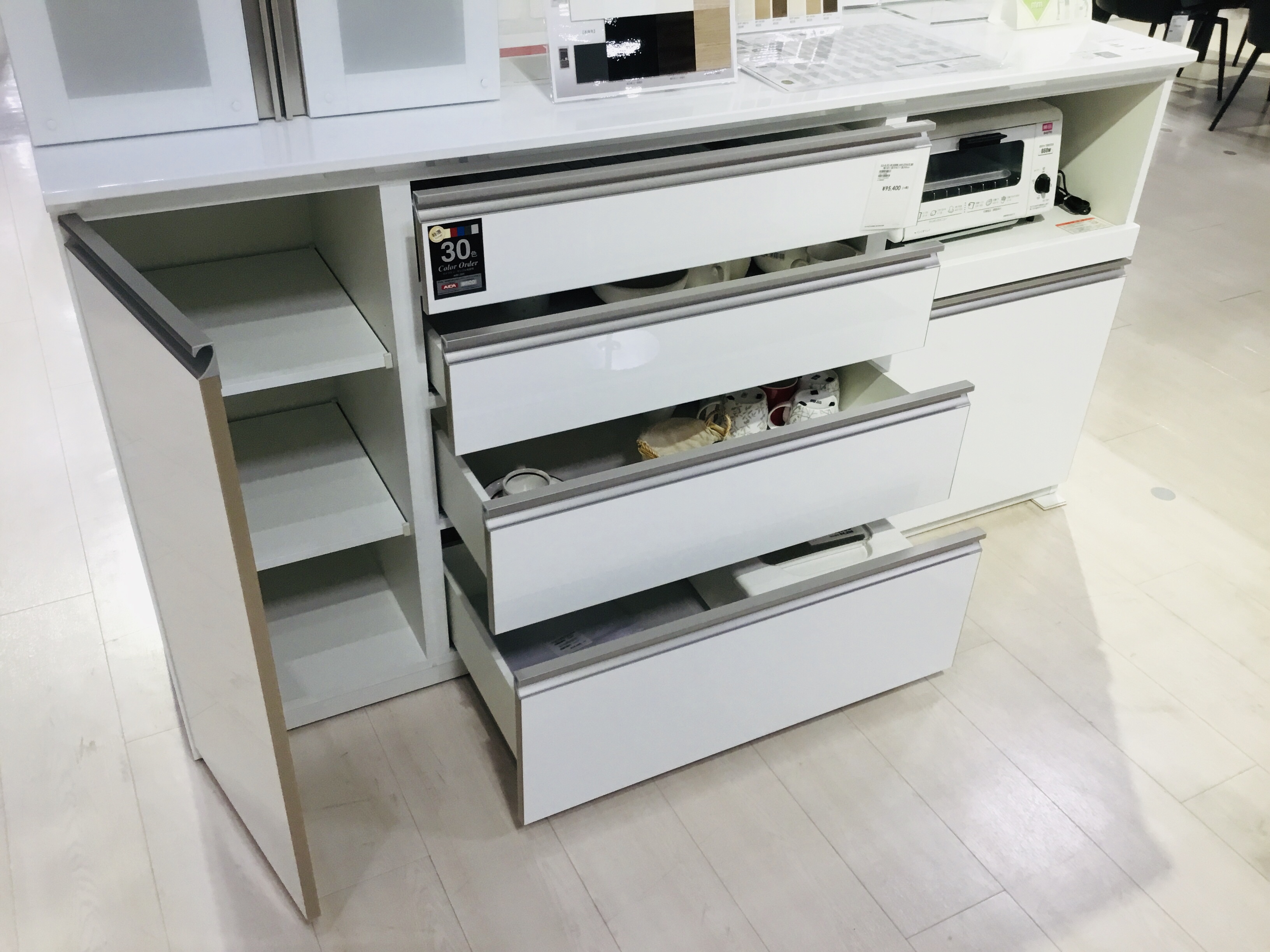 下台は引き出し4段と開き扉で収納力抜群!