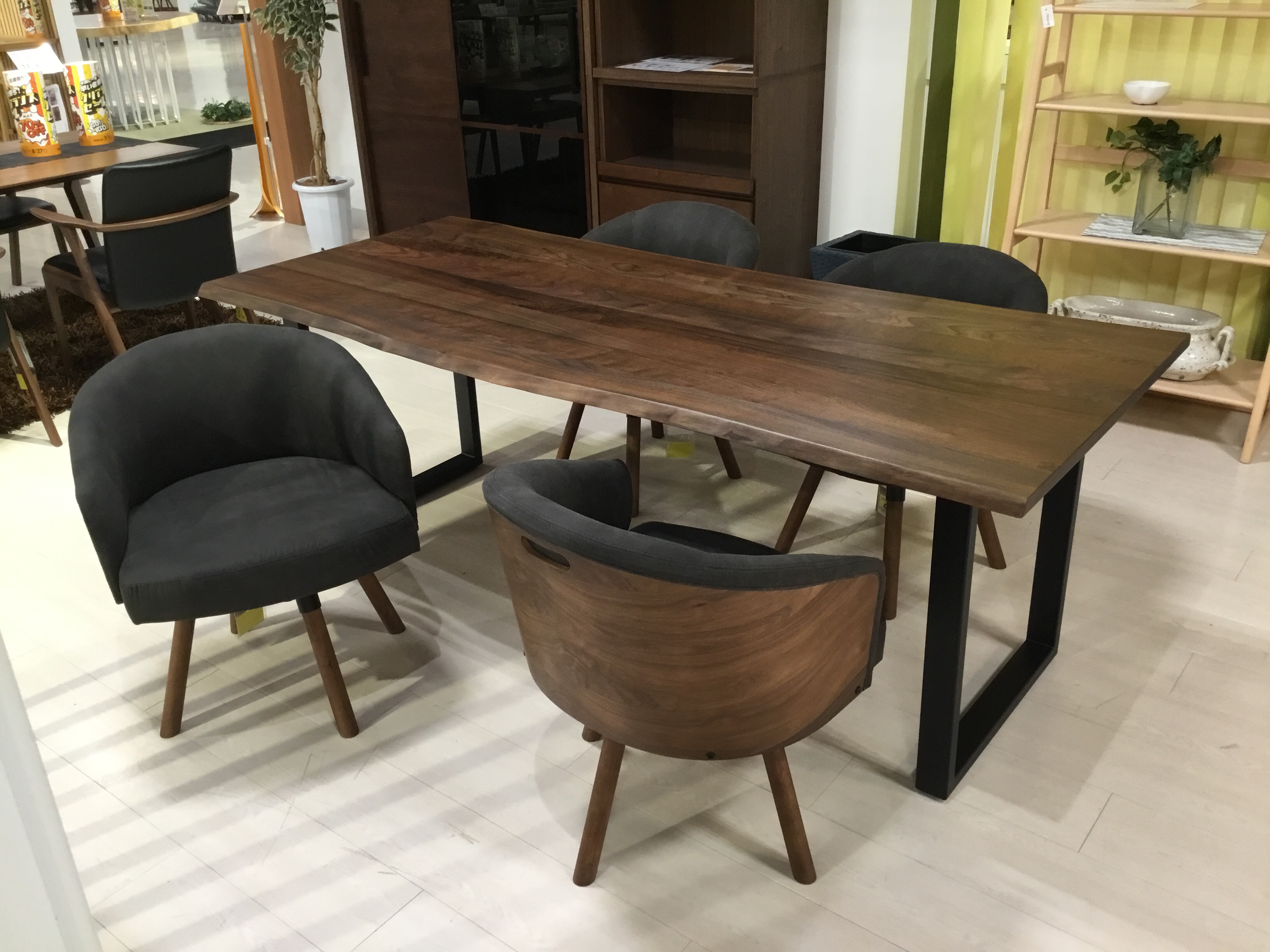 今日はダイニング売場より、天板厚3cm、ボリュームのある木製ダイニングセットのご紹介です。