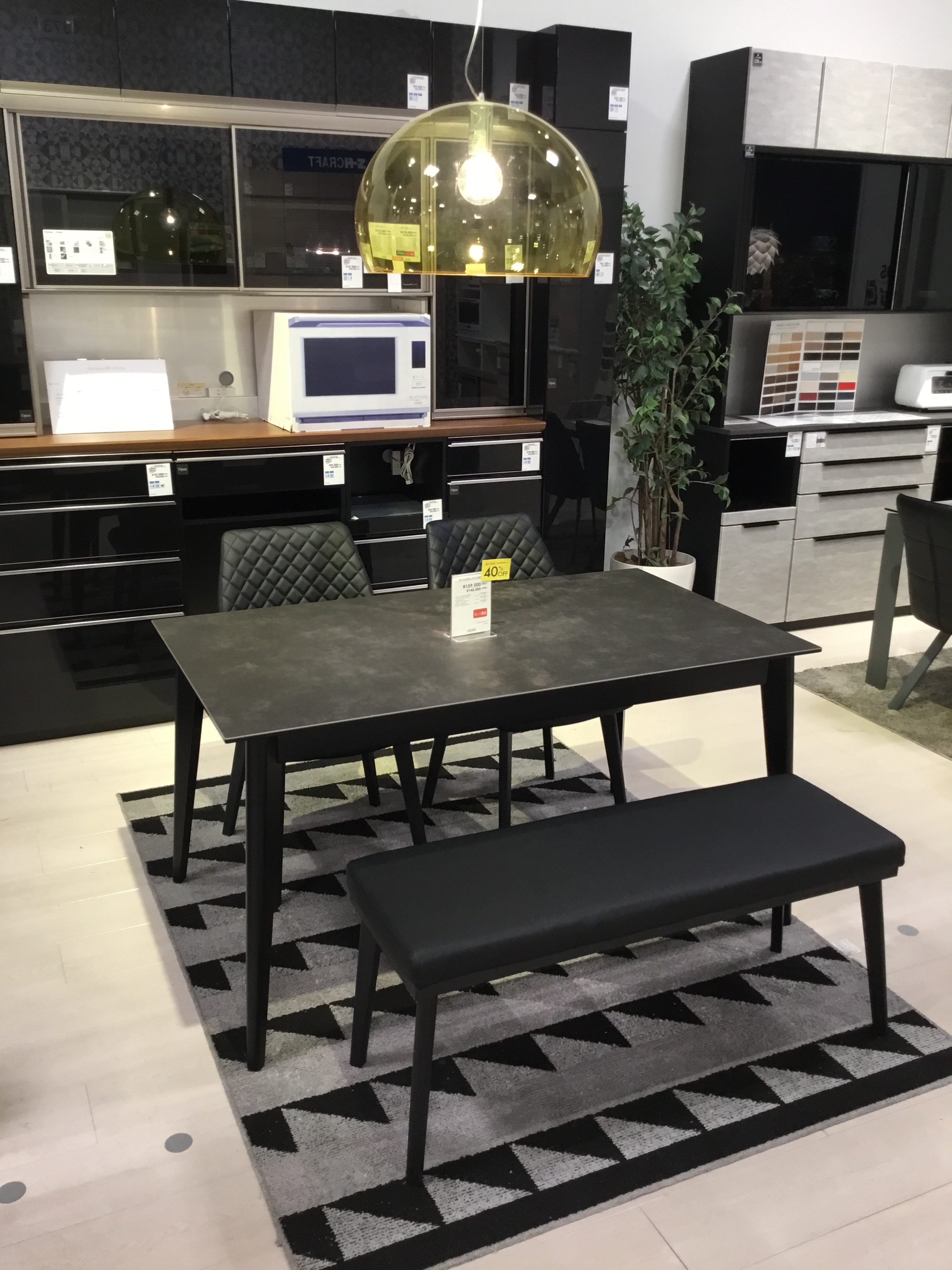 幅140cm、モダンなデザインのセラミックダイニング。