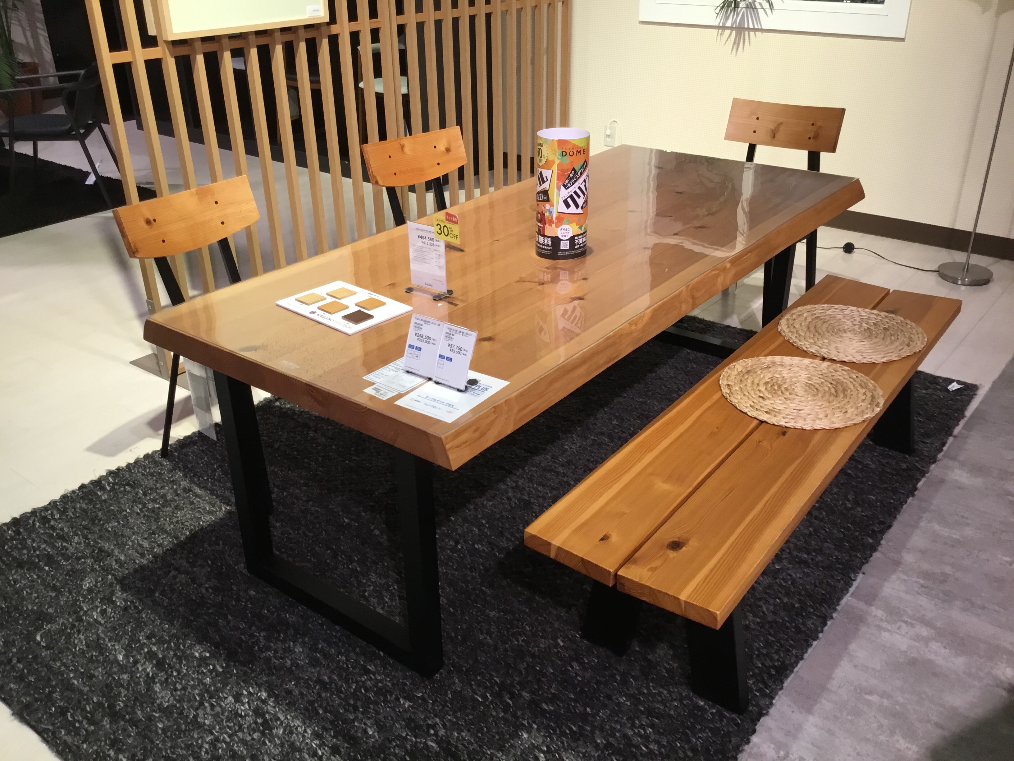 スギ材を使用した幅200cmのダイニングセット。