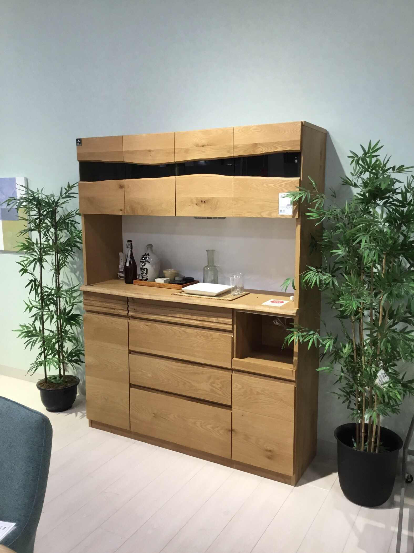 節入りの天然杢を使用した和風な食器棚。