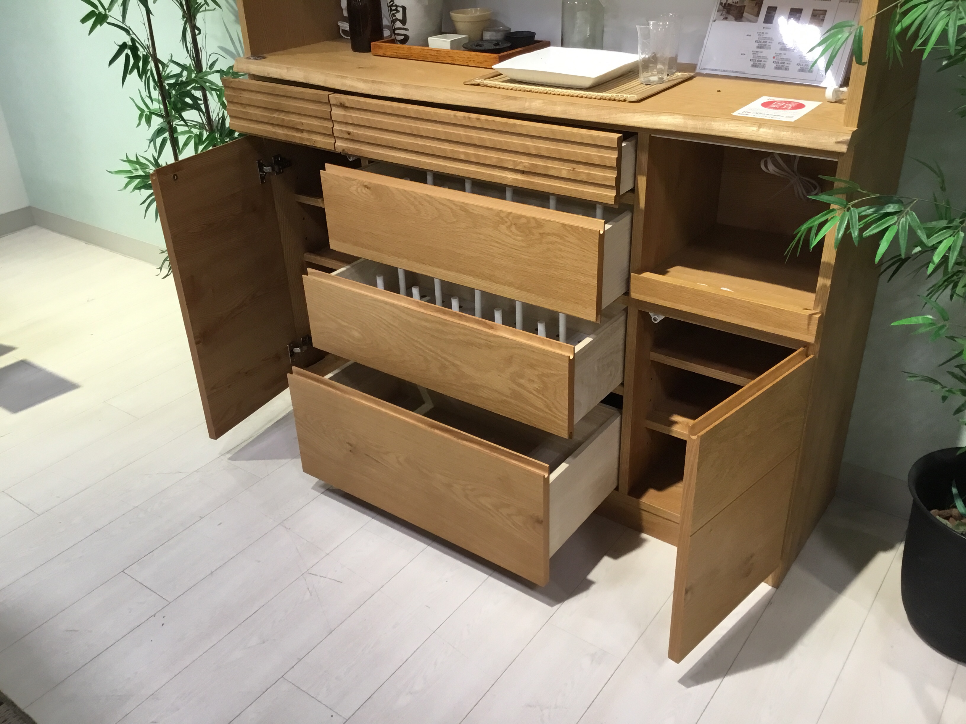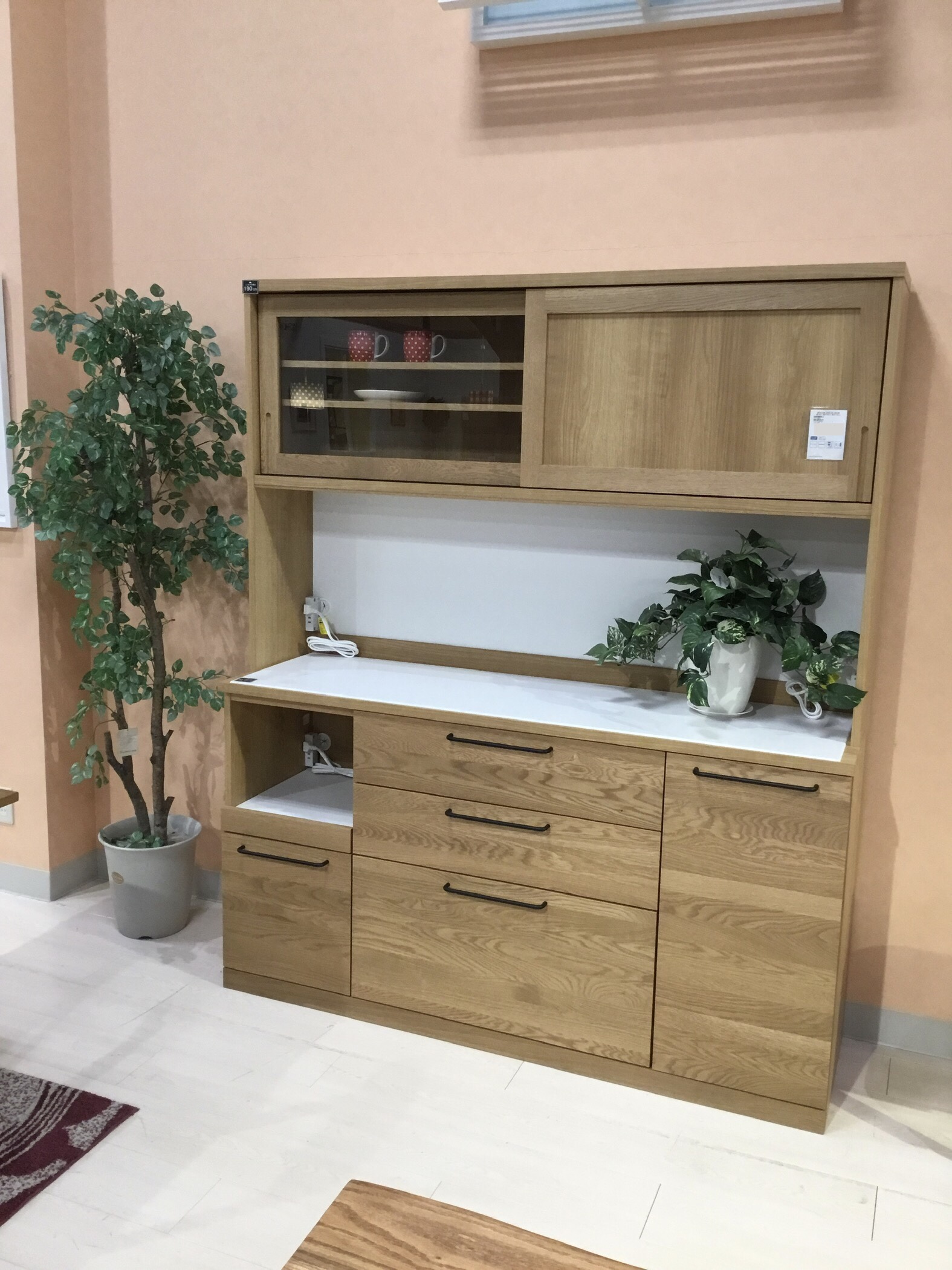 他のモデルと比べて優しい雰囲気の食器棚です。
