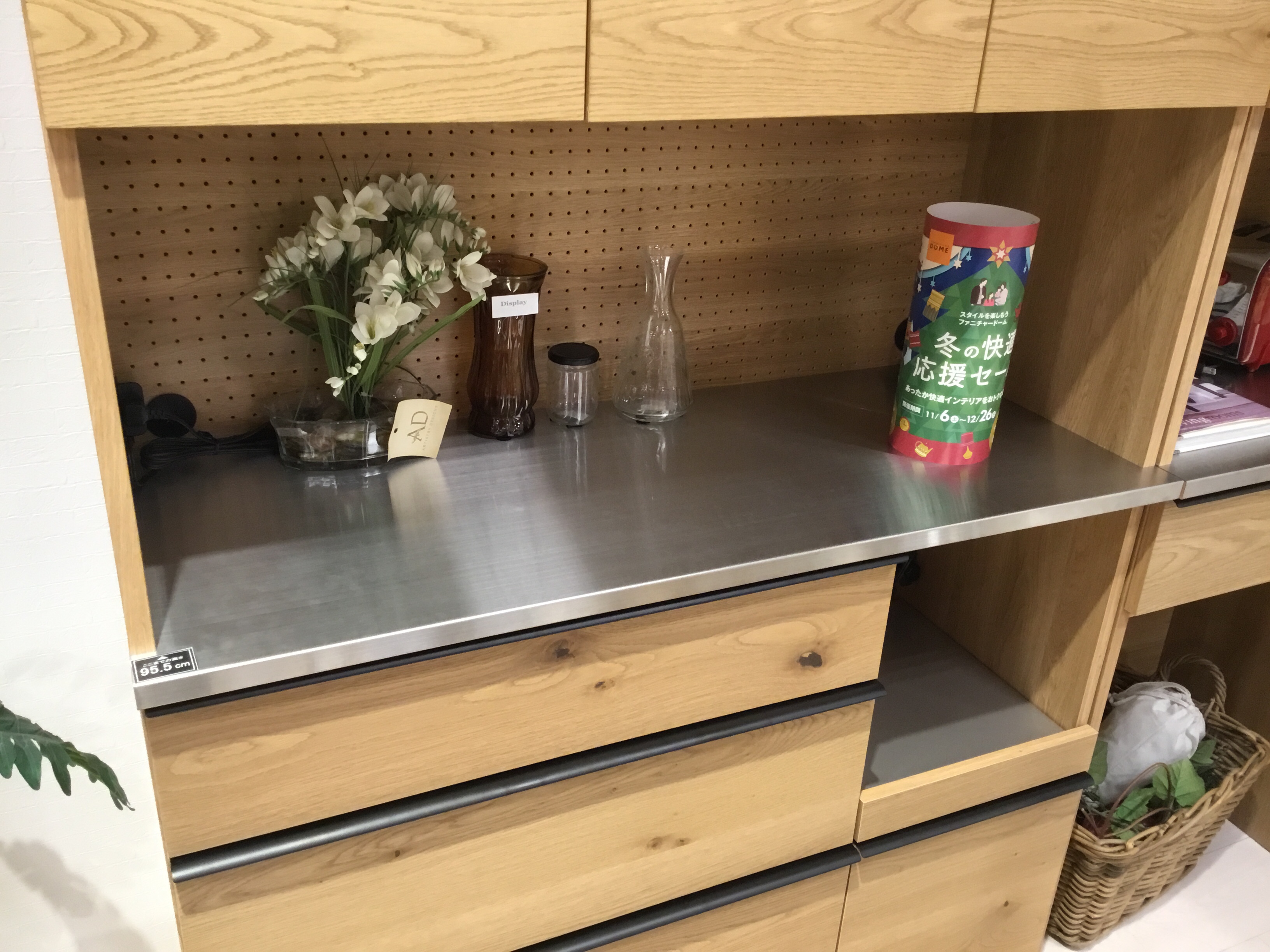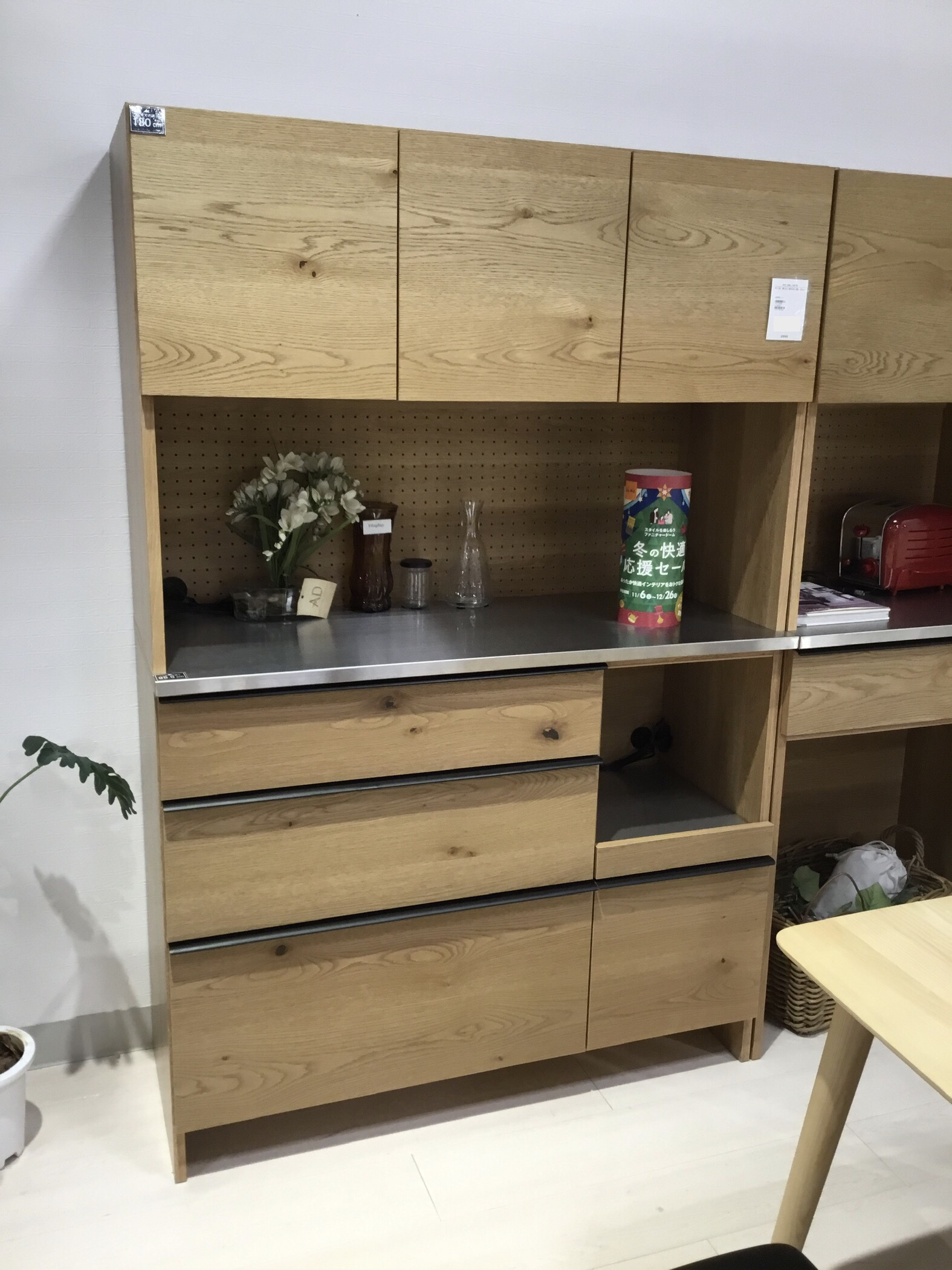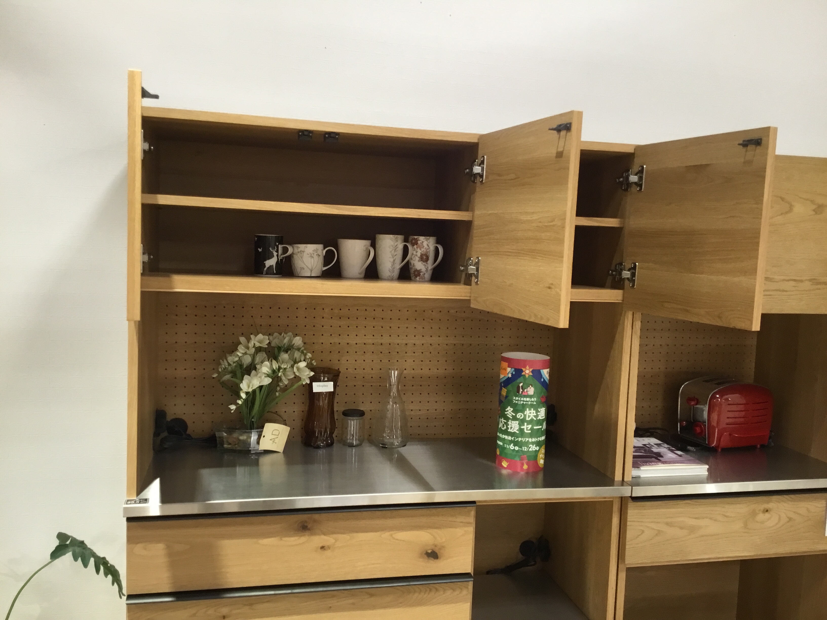 木質×スチール×ステンレスが特徴の食器棚。