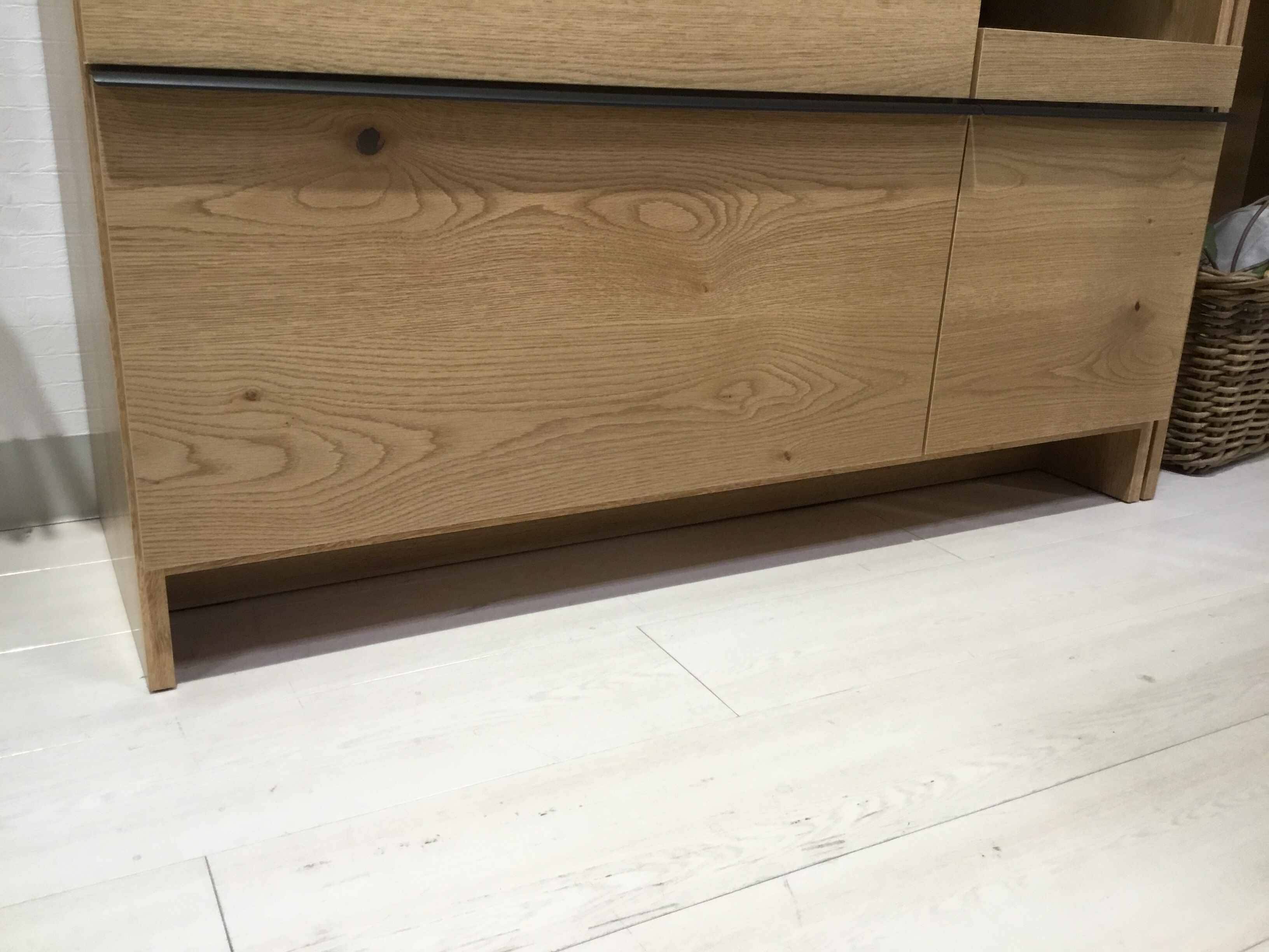 こちらもあえて節ありの突板を木目をつなげて用い、しっとりとした印象のオイル塗装で仕上げています。