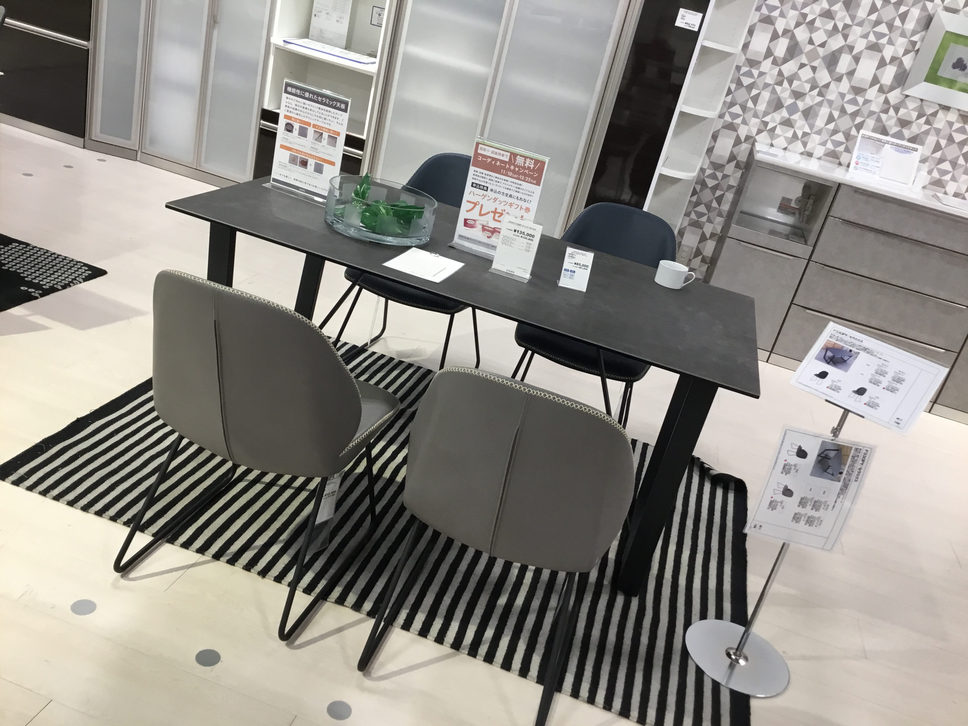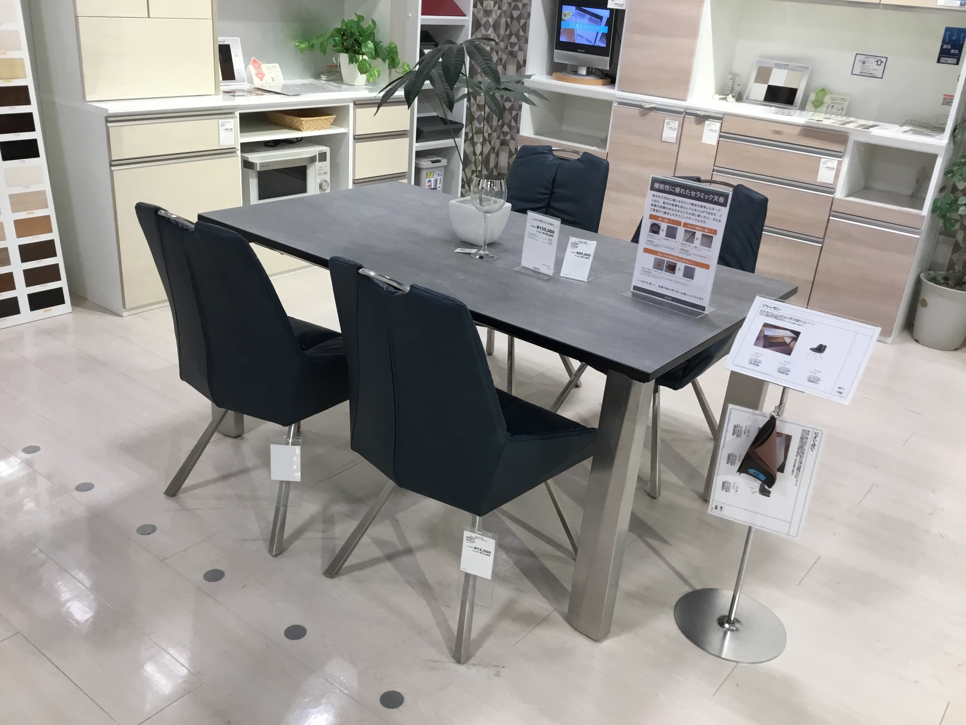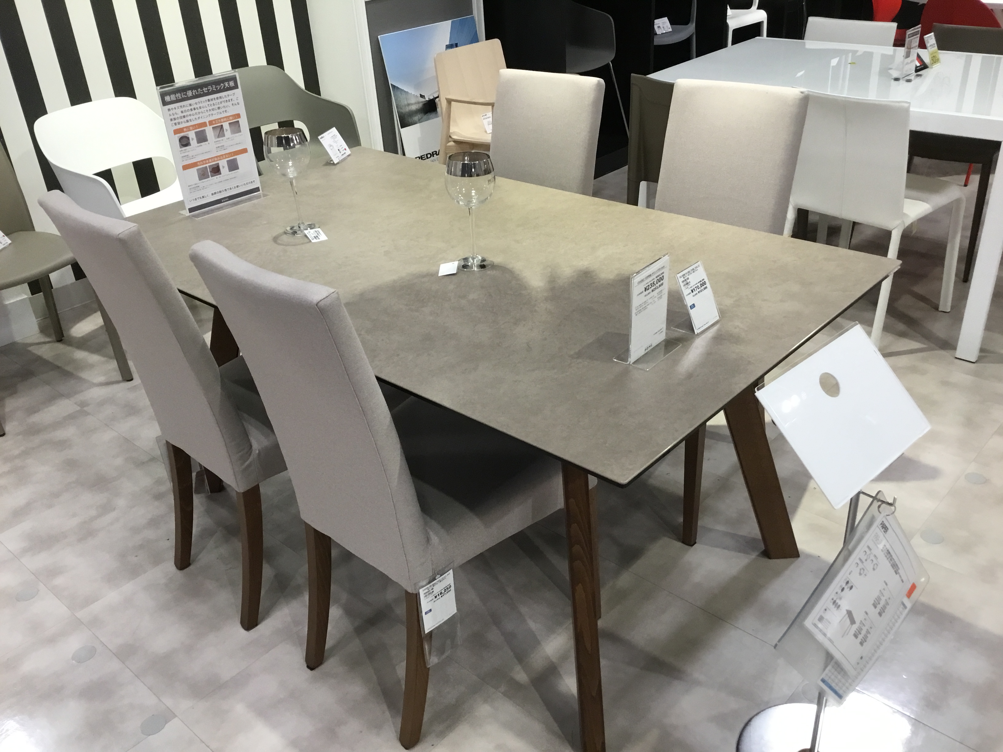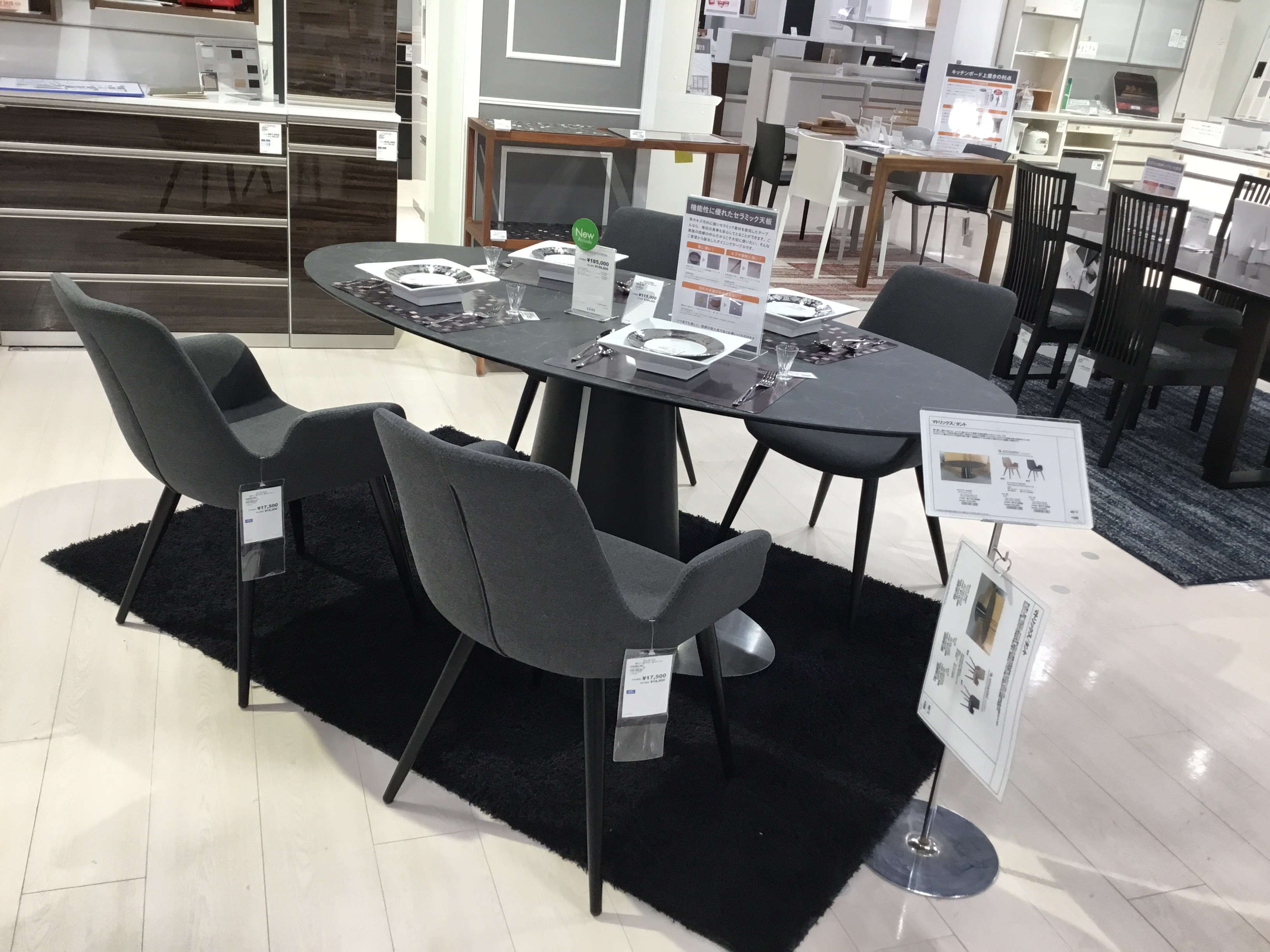 ファニチャードーム本店では、セラミックダイニングテーブルコーナーにて、