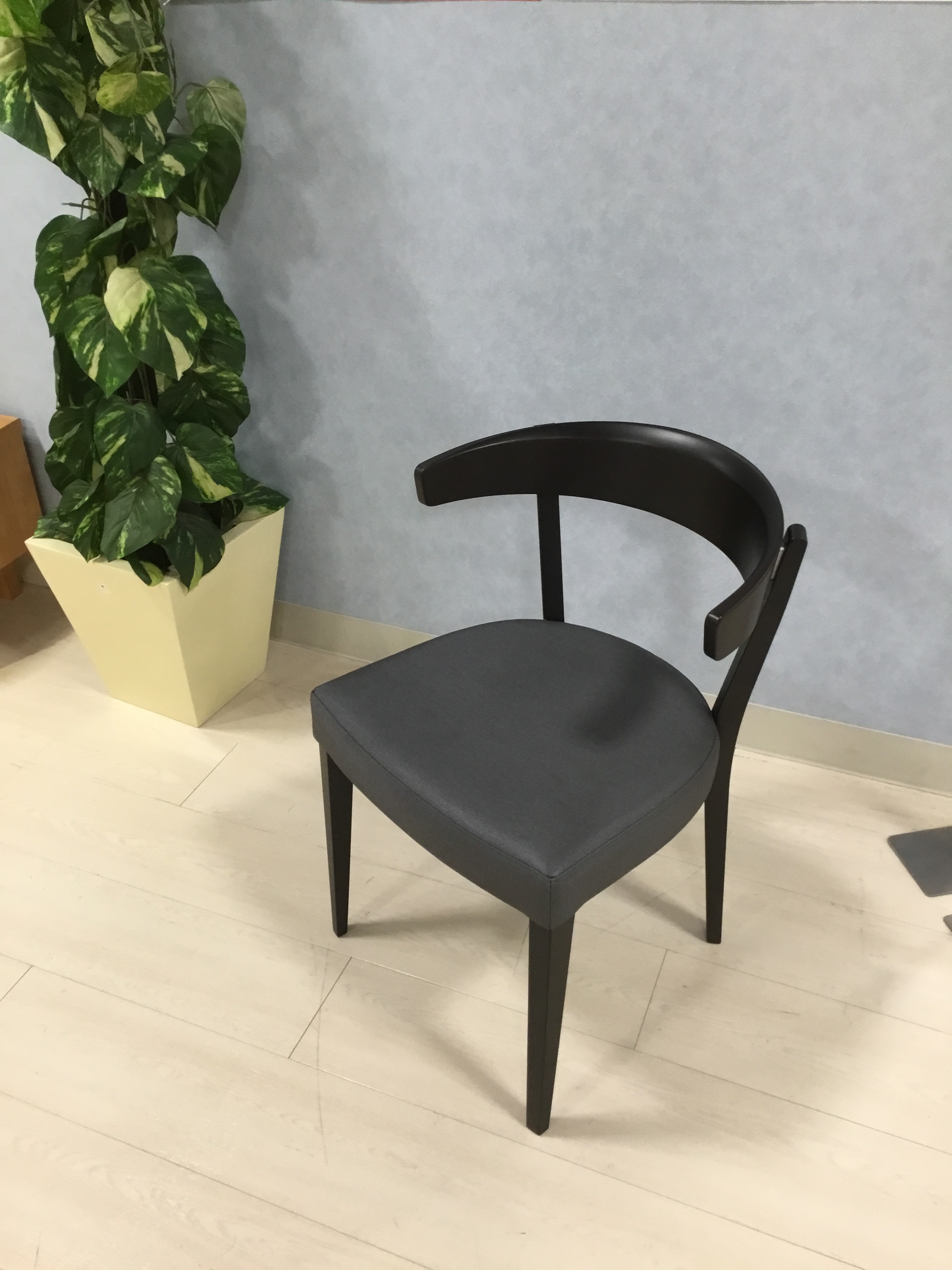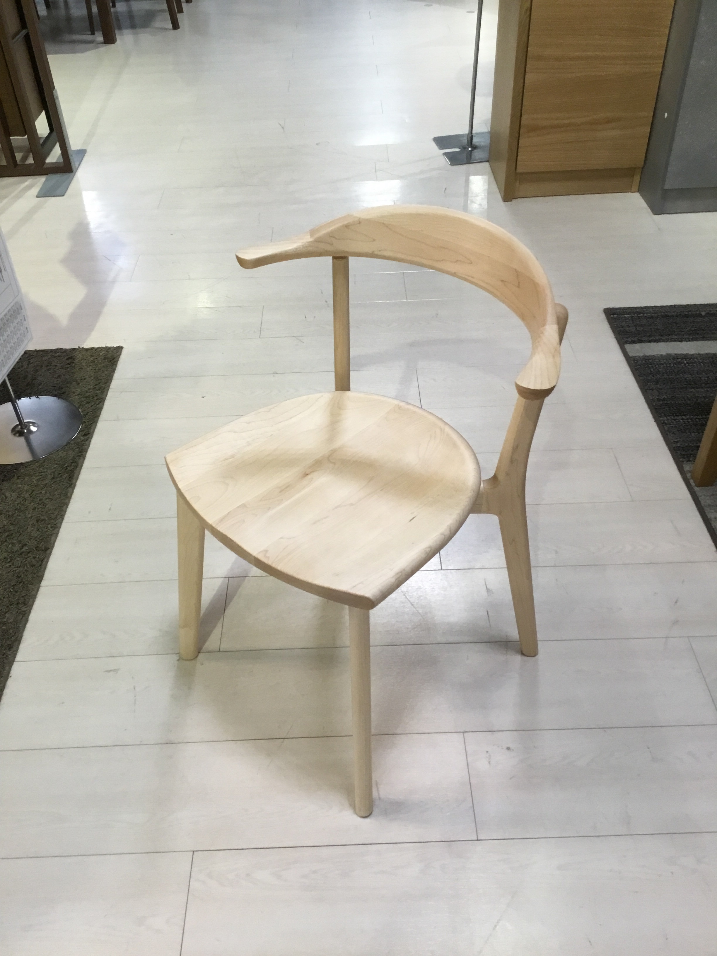 背中の丸みが背もたれへのあたりが優しく、座りやすいチェアです。