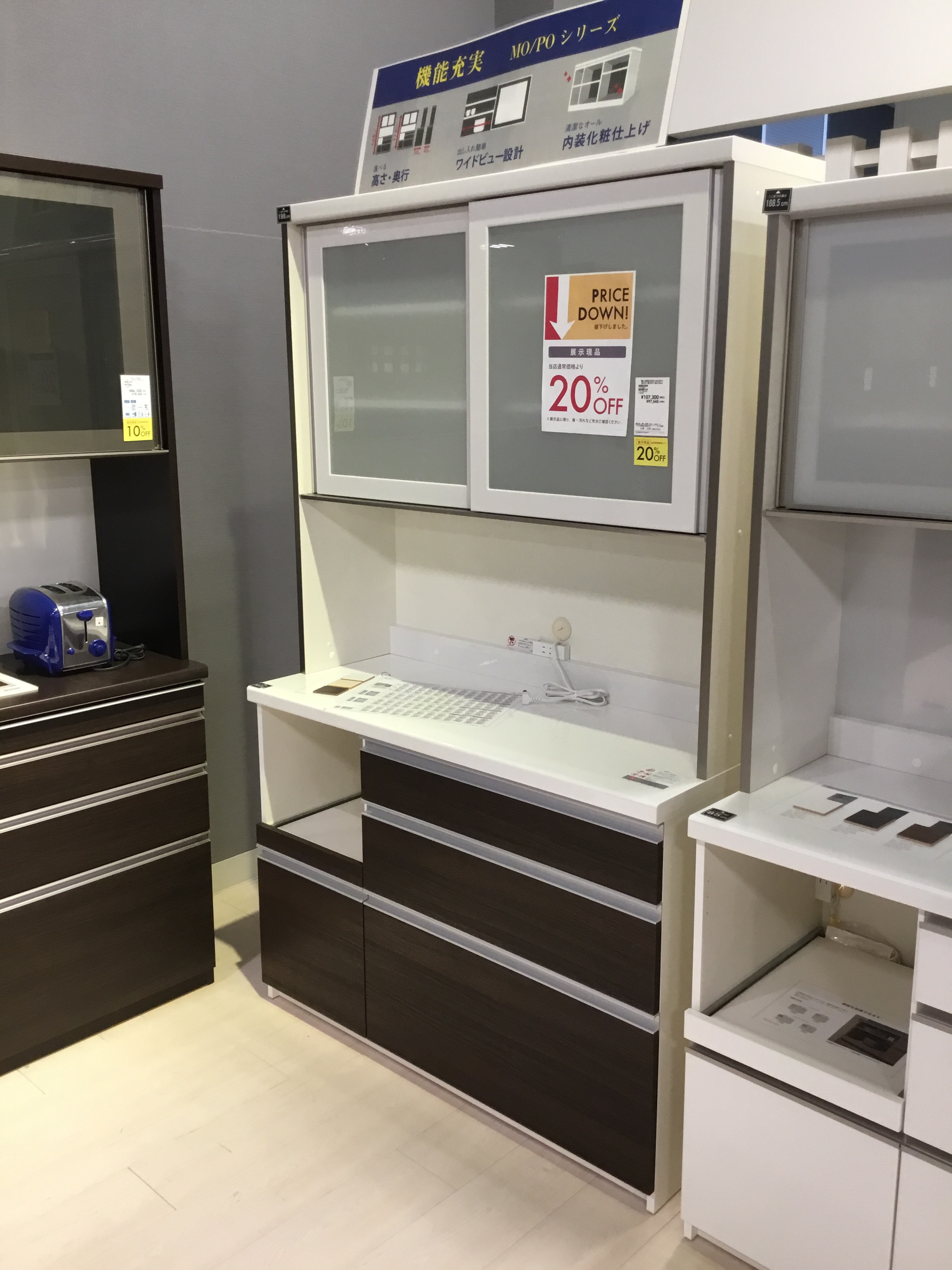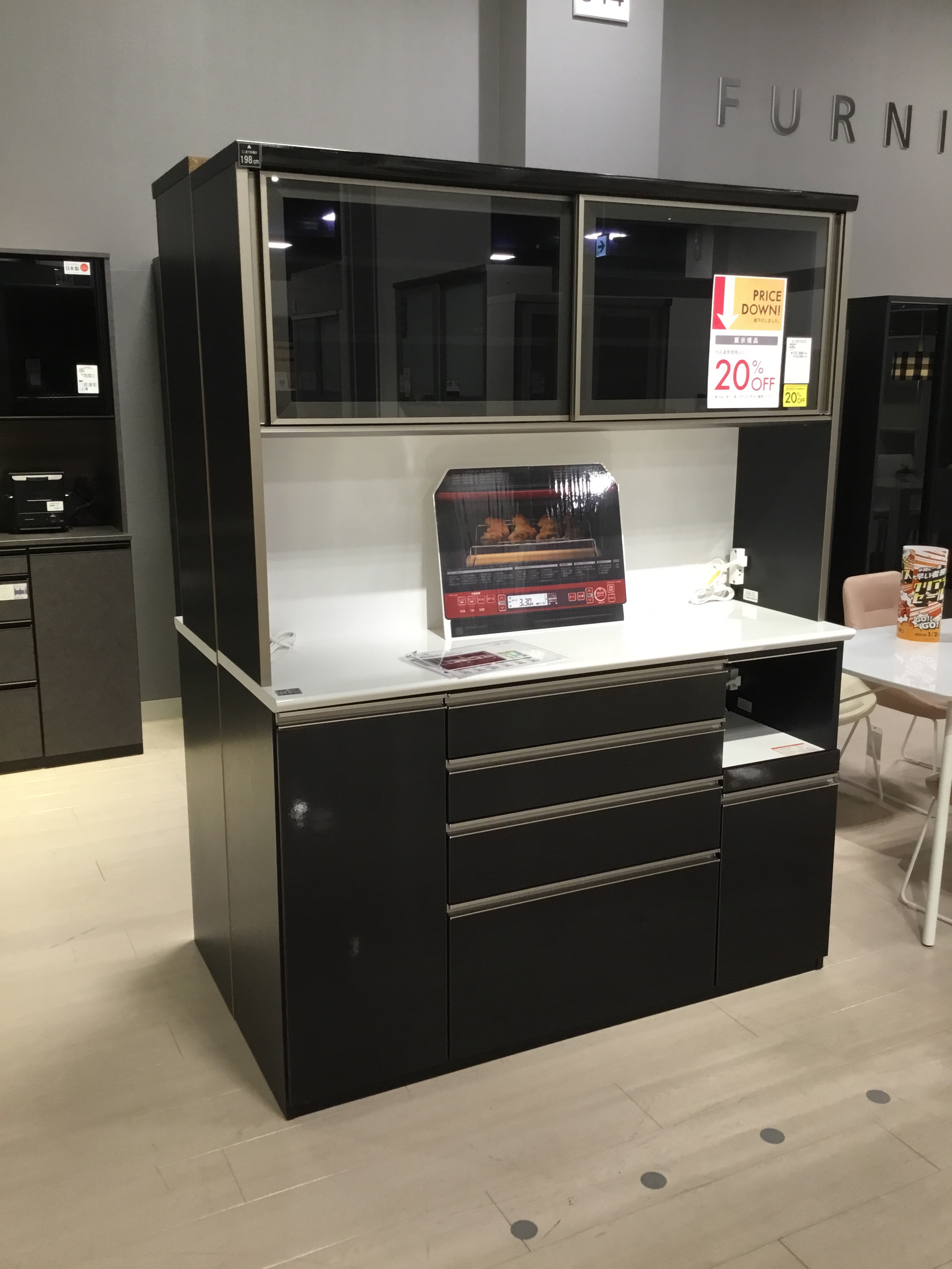 幅120cmの食器棚。