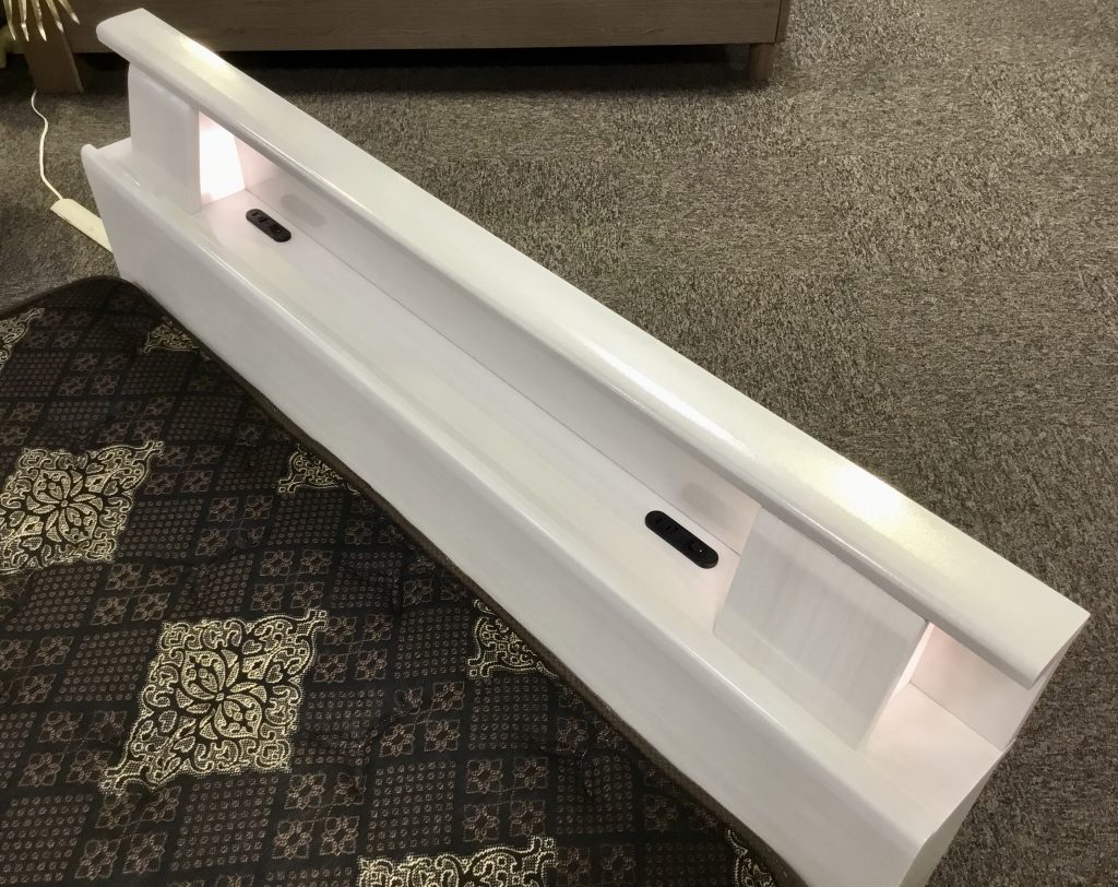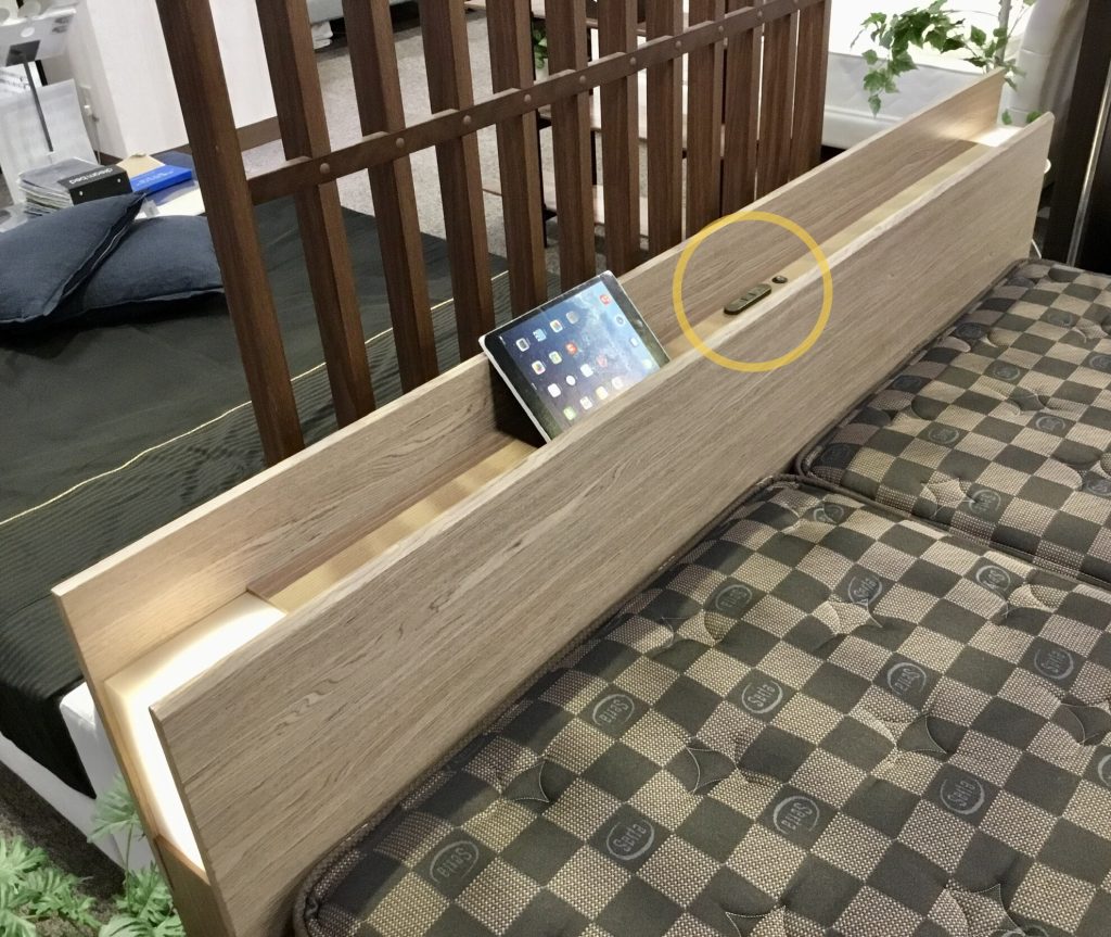 ヘッドボードの中央部には2口コンセントと照明のスイッチが付き。