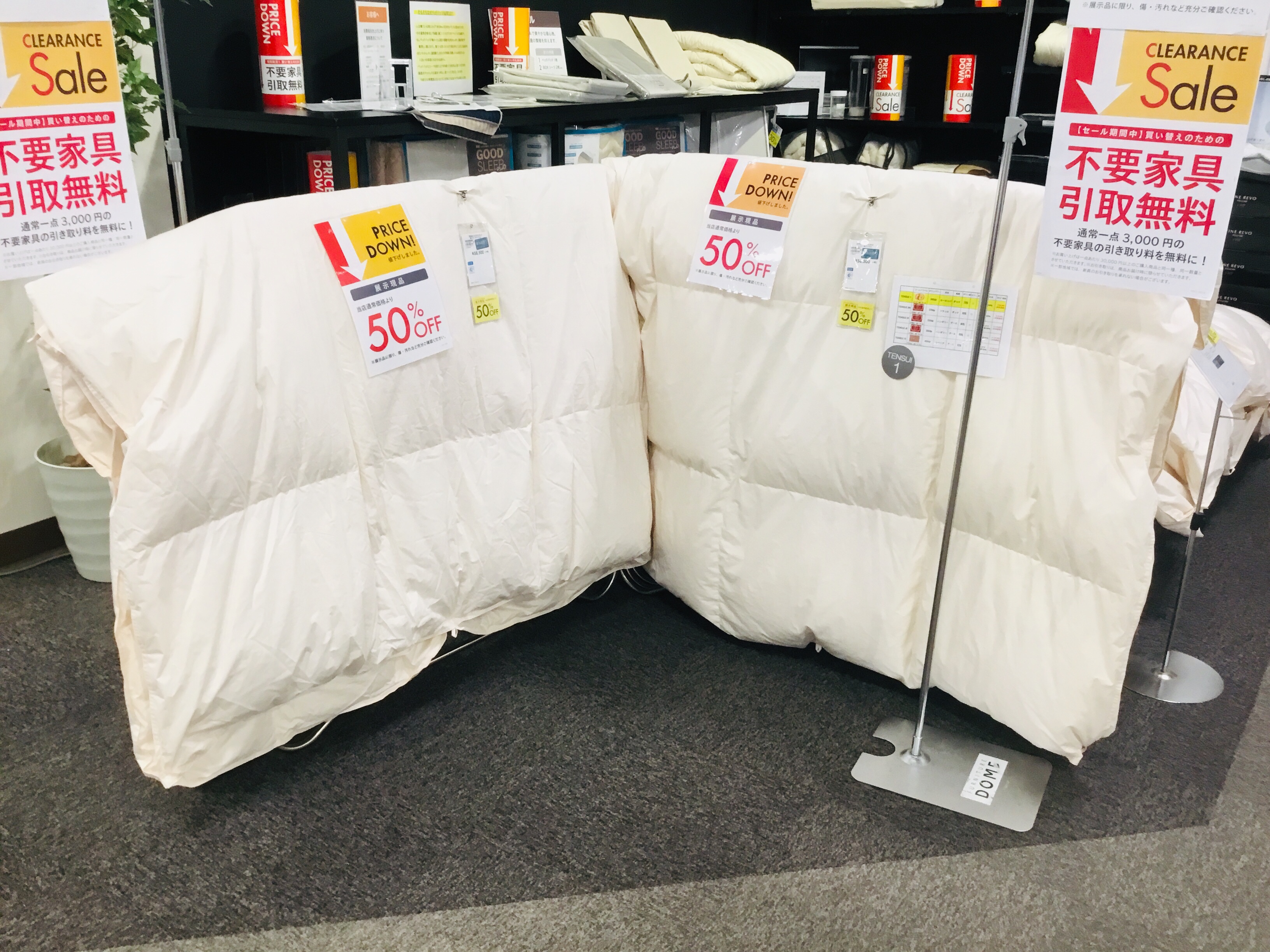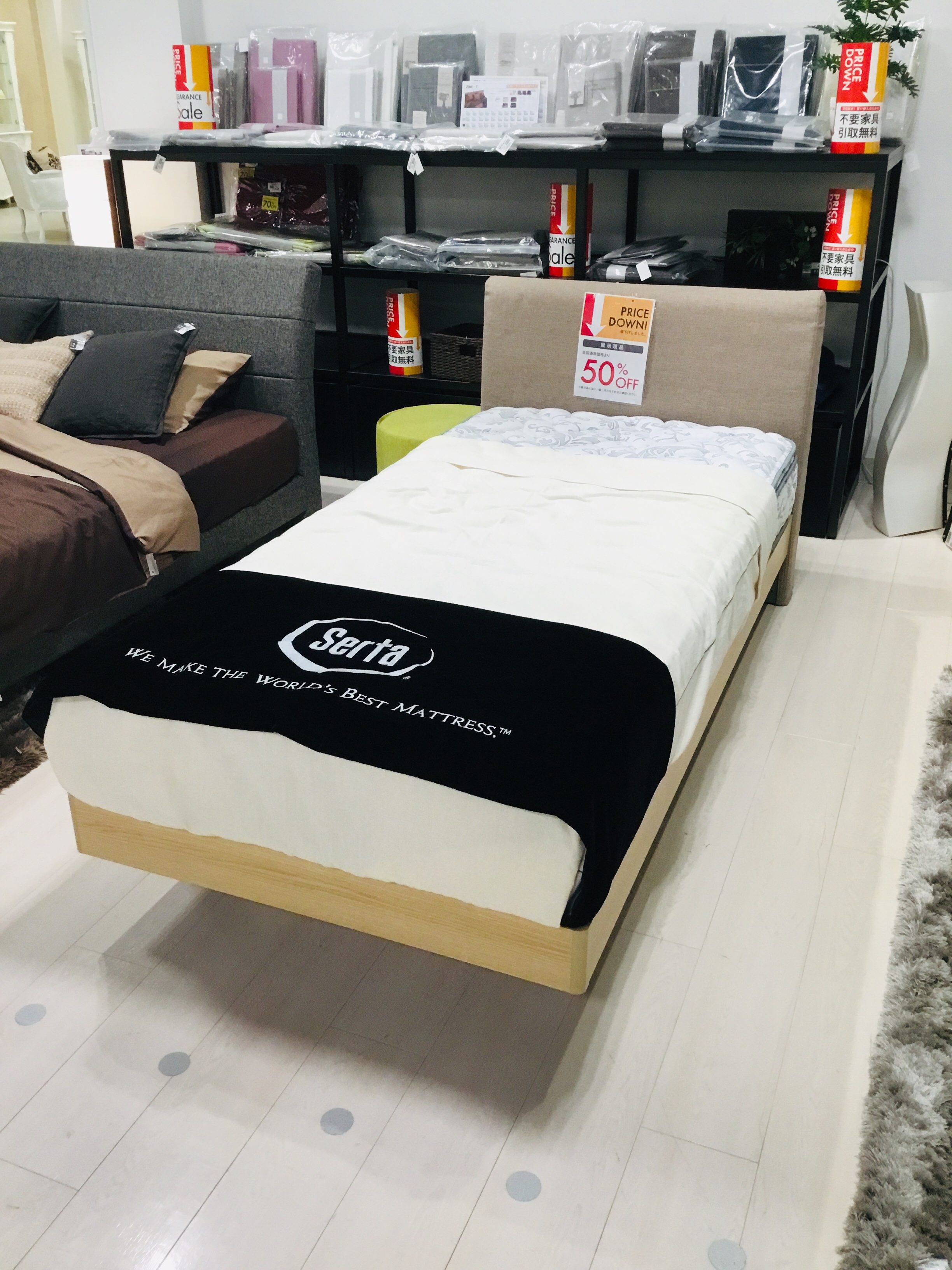 ベッドフレーム+マットレス¥140,000(+税)が展示現品50%です。
