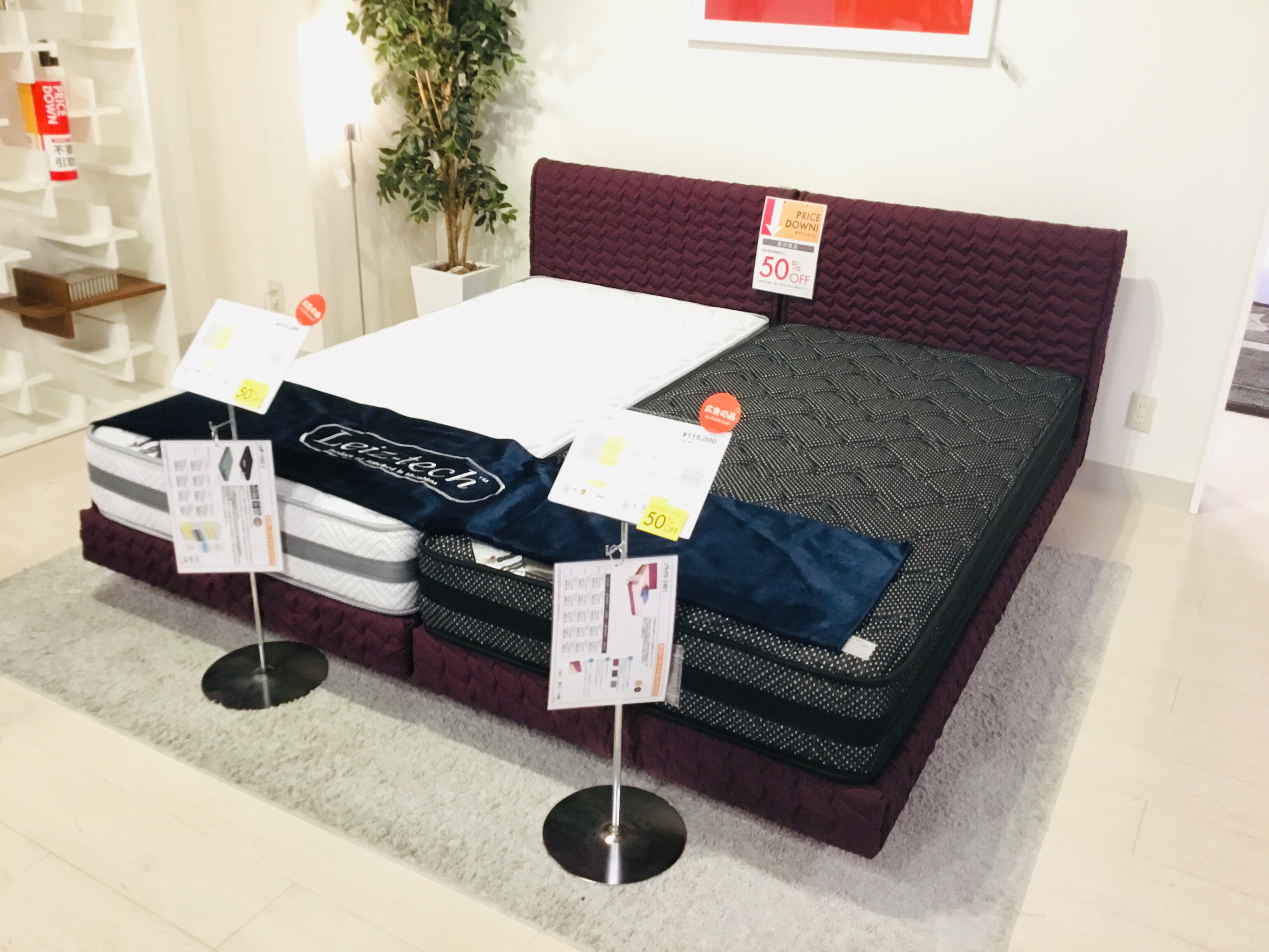 ベッドフレーム+マットレス ¥101,667(+税)が展示現品50%オフ!