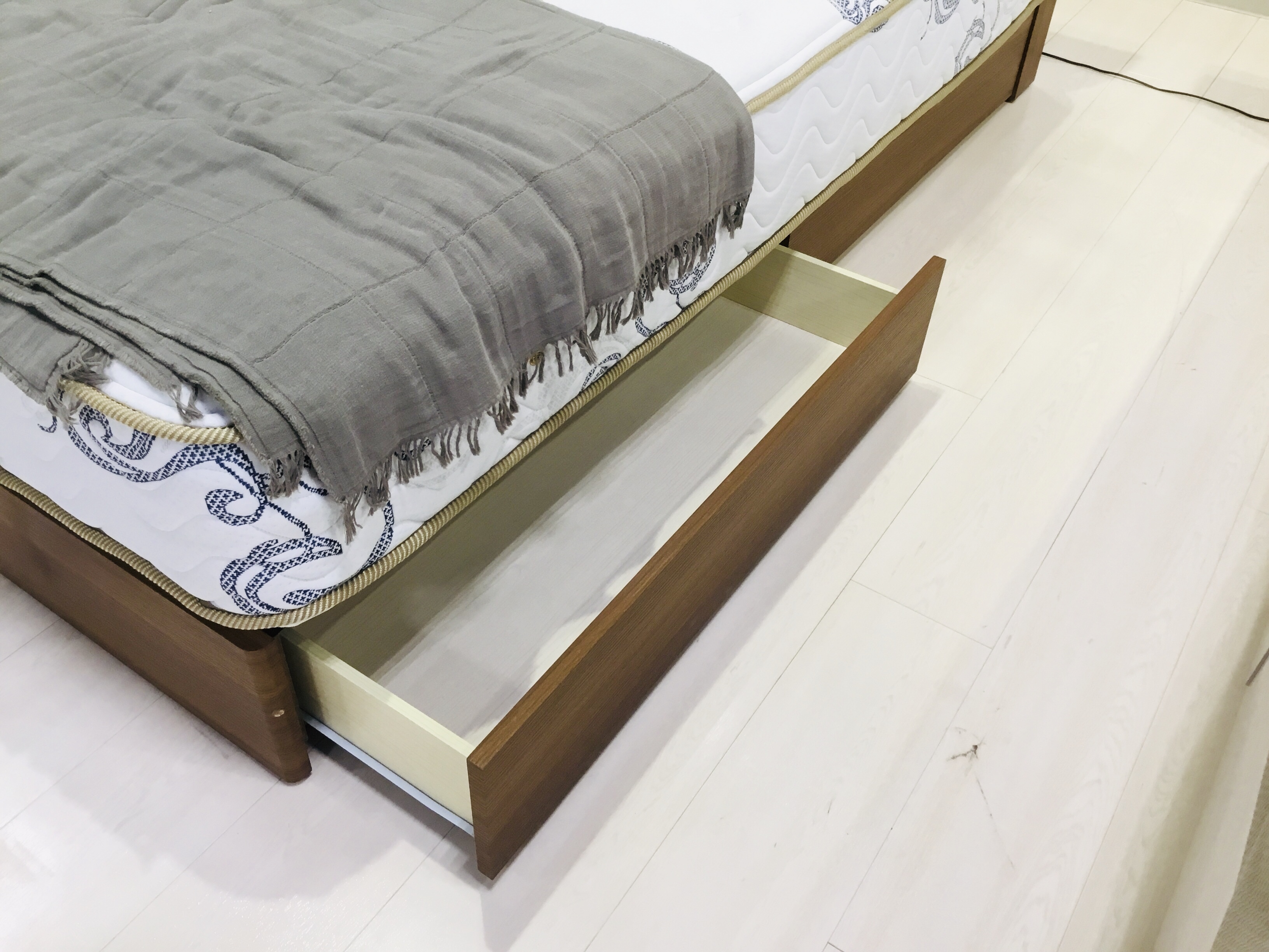 脚元は収納できる引き出しタイプです。