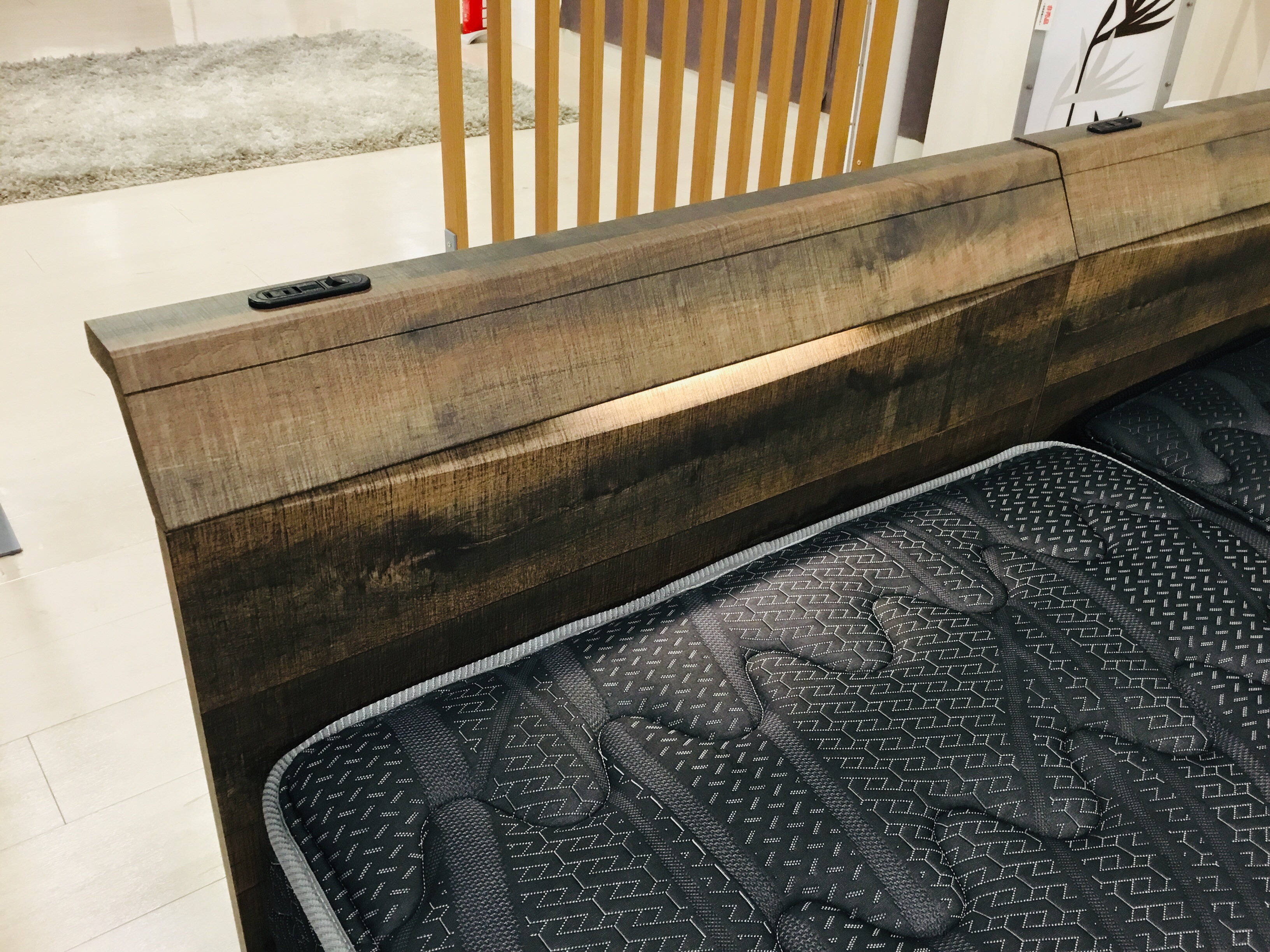 ヘッドボードは手元を明るく照らしてくれるLEDライトと携帯電話などの充電に便利なスライドコンセント付きです。