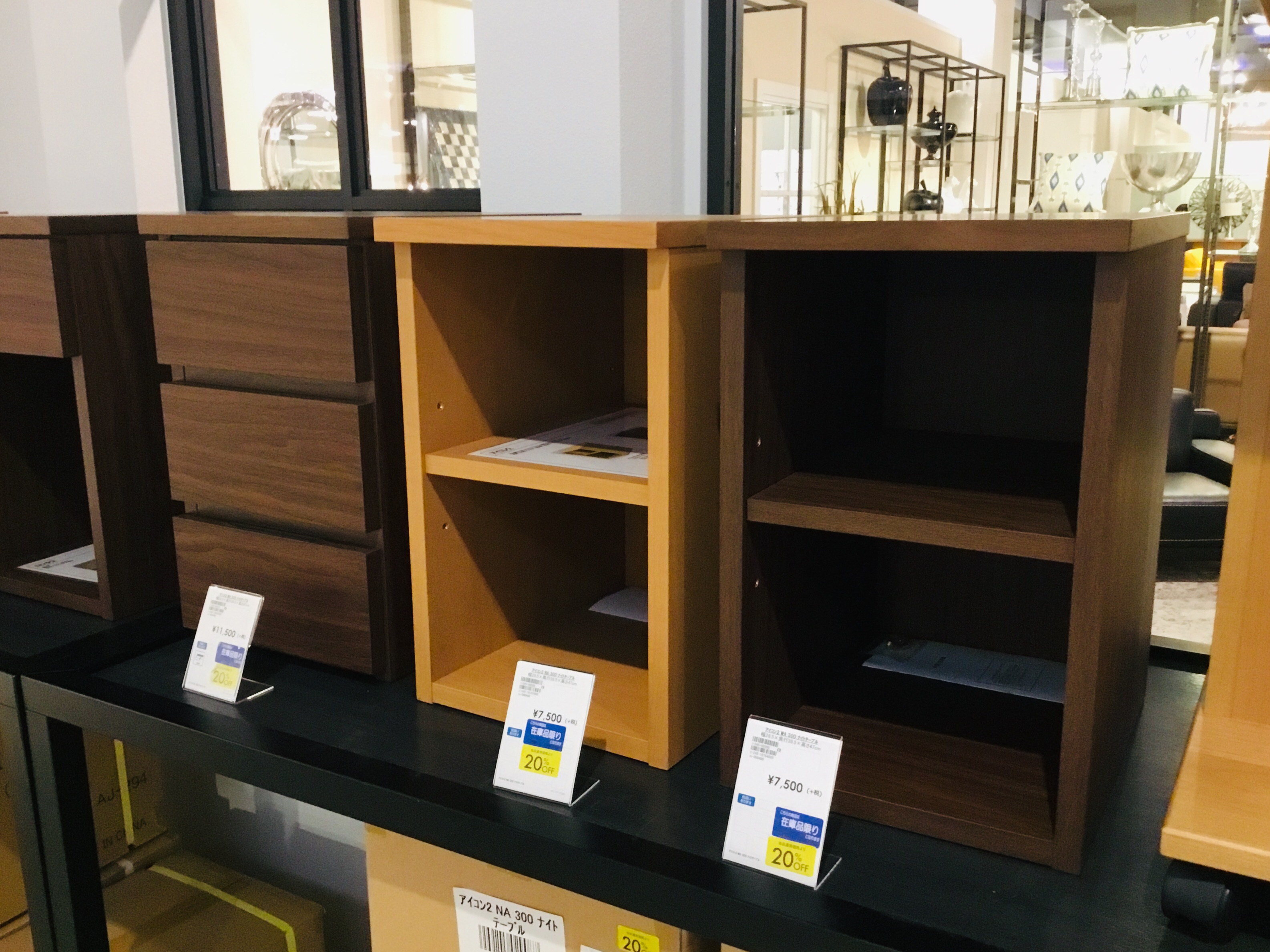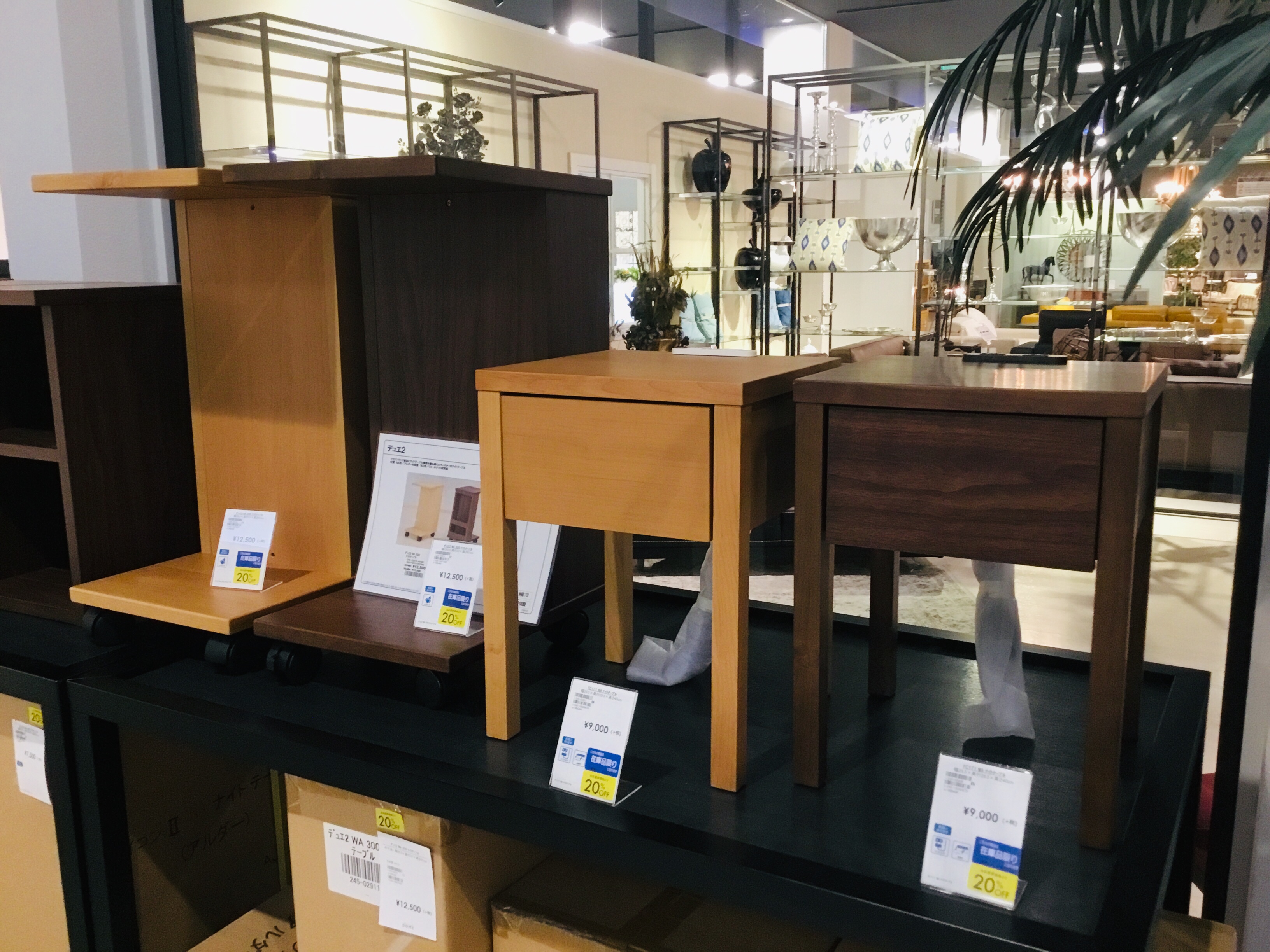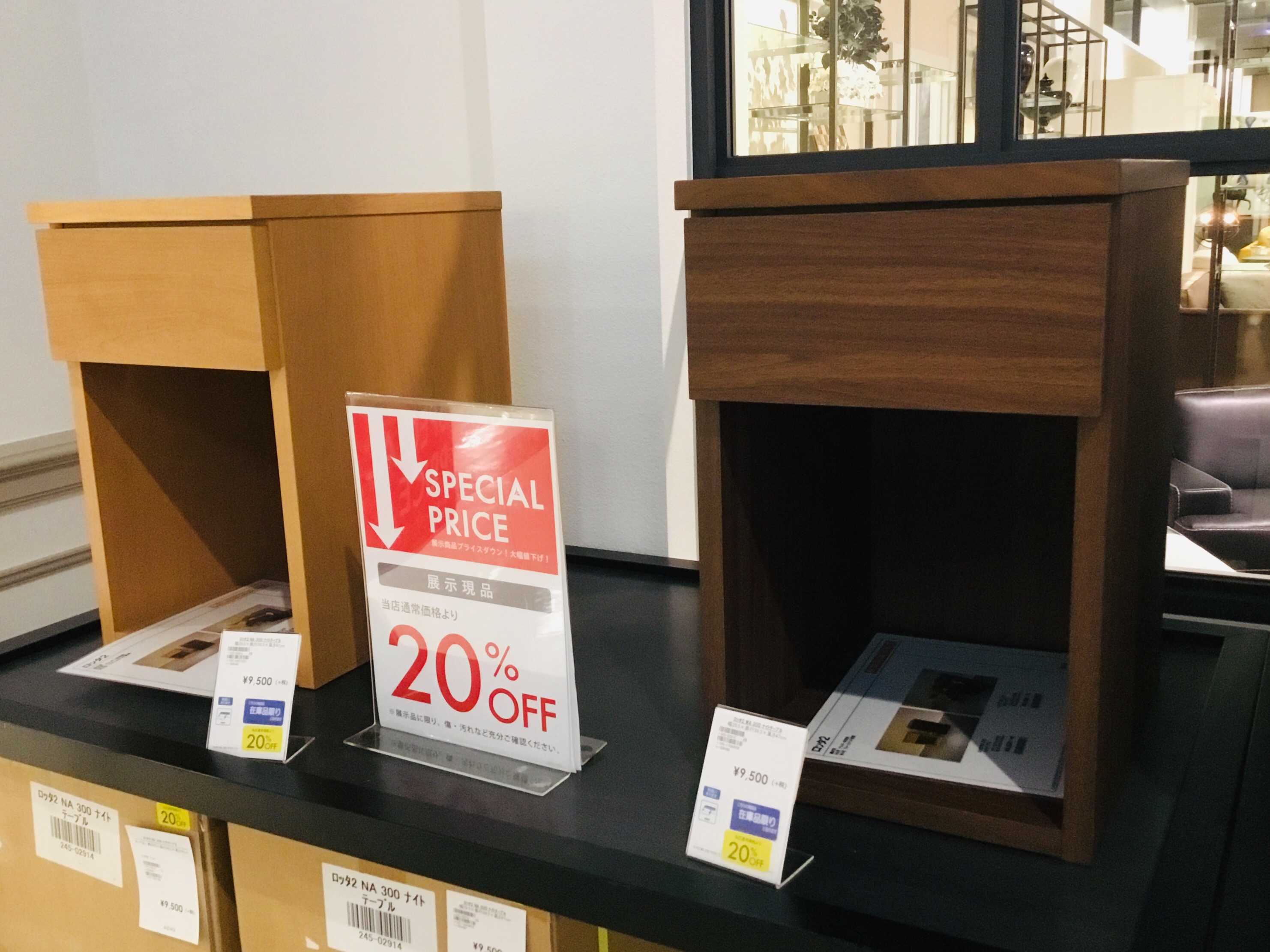 さらにベッドコーナー前ではベッドサイドにおいて便利に使えるナイトテーブルも一部お値打ちになっています。
