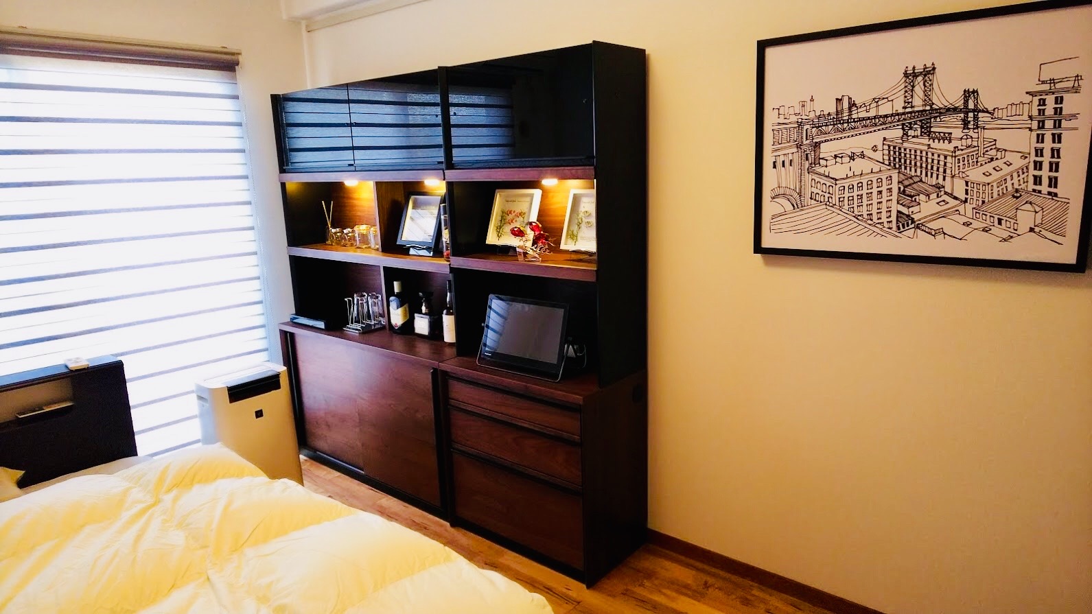こちらがその飾り棚。隣には、アート。S様のセンスが感じられます。