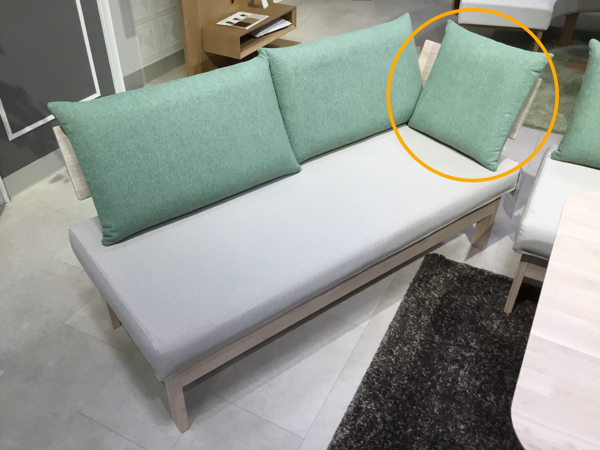 カウチ部分の背板はレイアウトに合わせて左右組み替えが可能です。