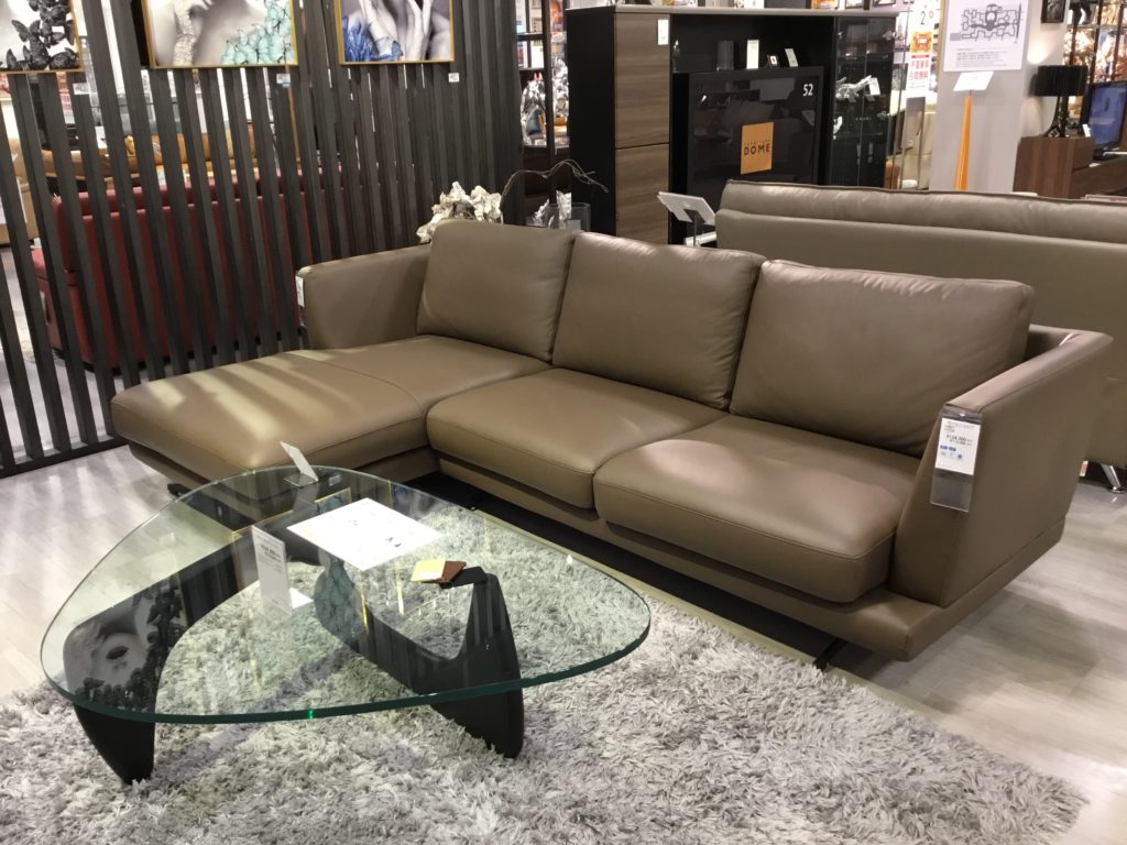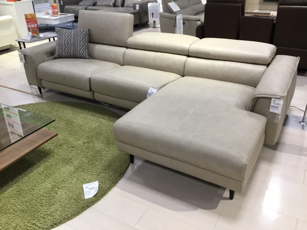 今、革のソファでお客様にとても人気があるなーと感じるのが、グレージュ色のソファです。