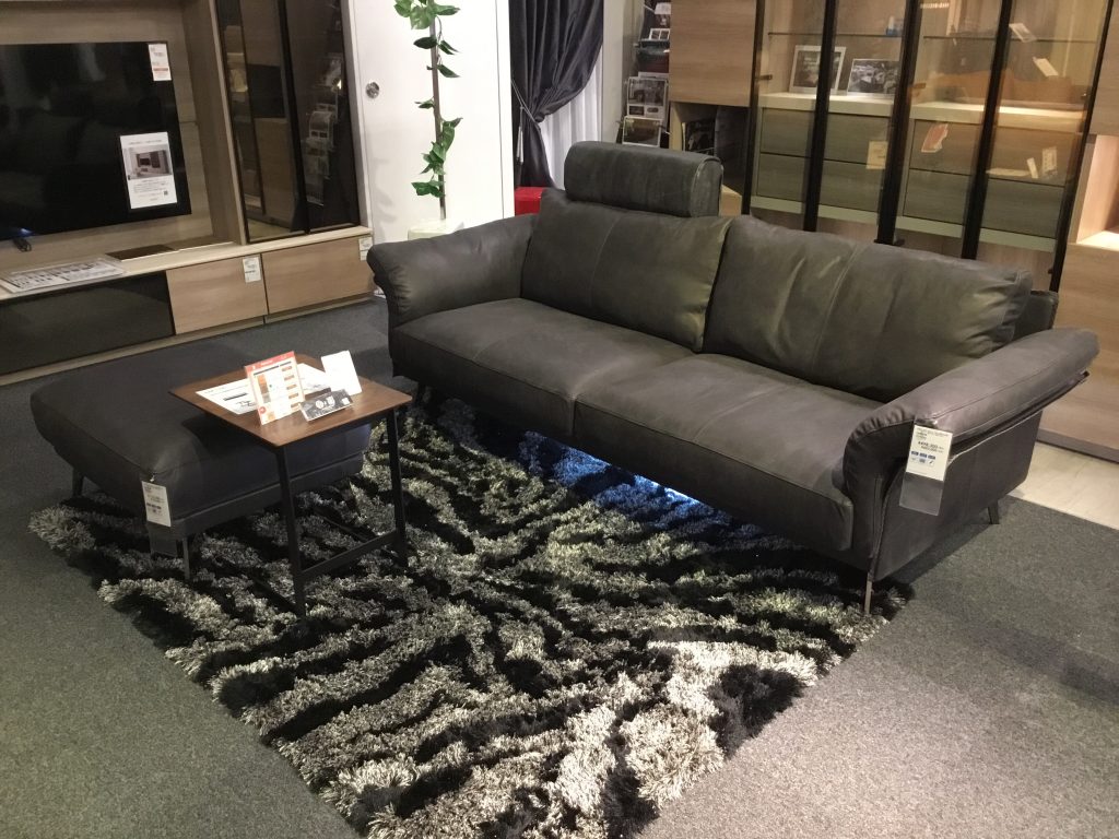 リビング売場から、洗練されたデザインのレザーソファをご紹介します。