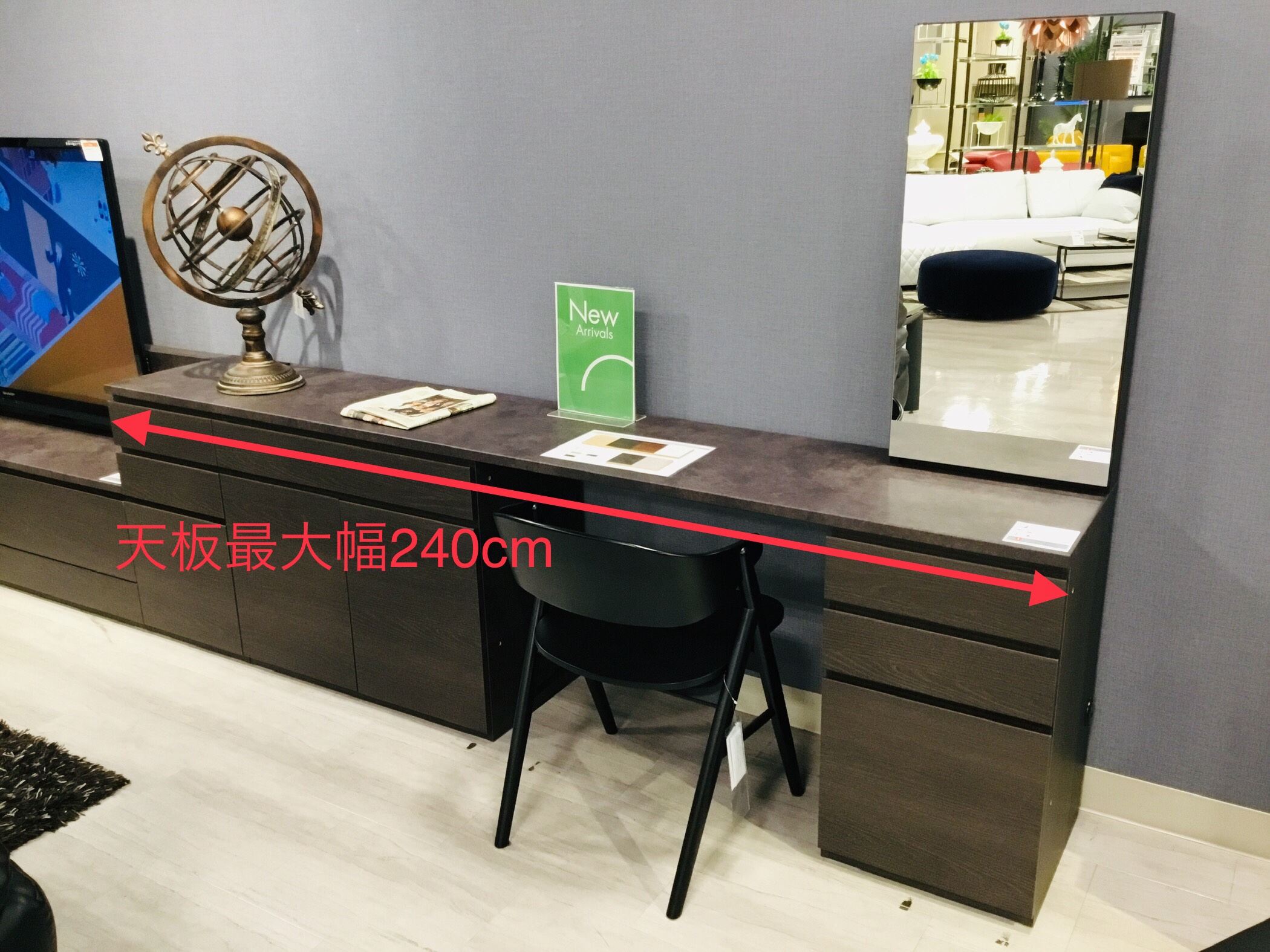 天板が1cmきざみでつくれ、最大幅240cmまで作成可能です。