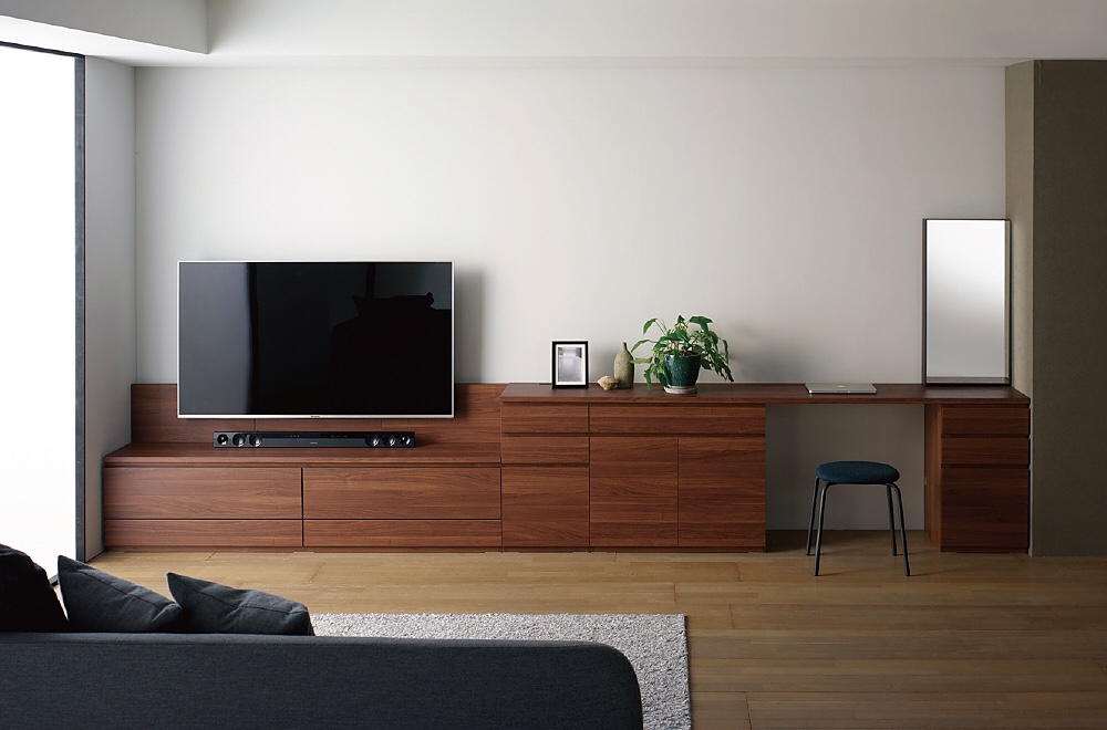テレビ台とサイドボードを並べるとお部屋のまとまりがでます。