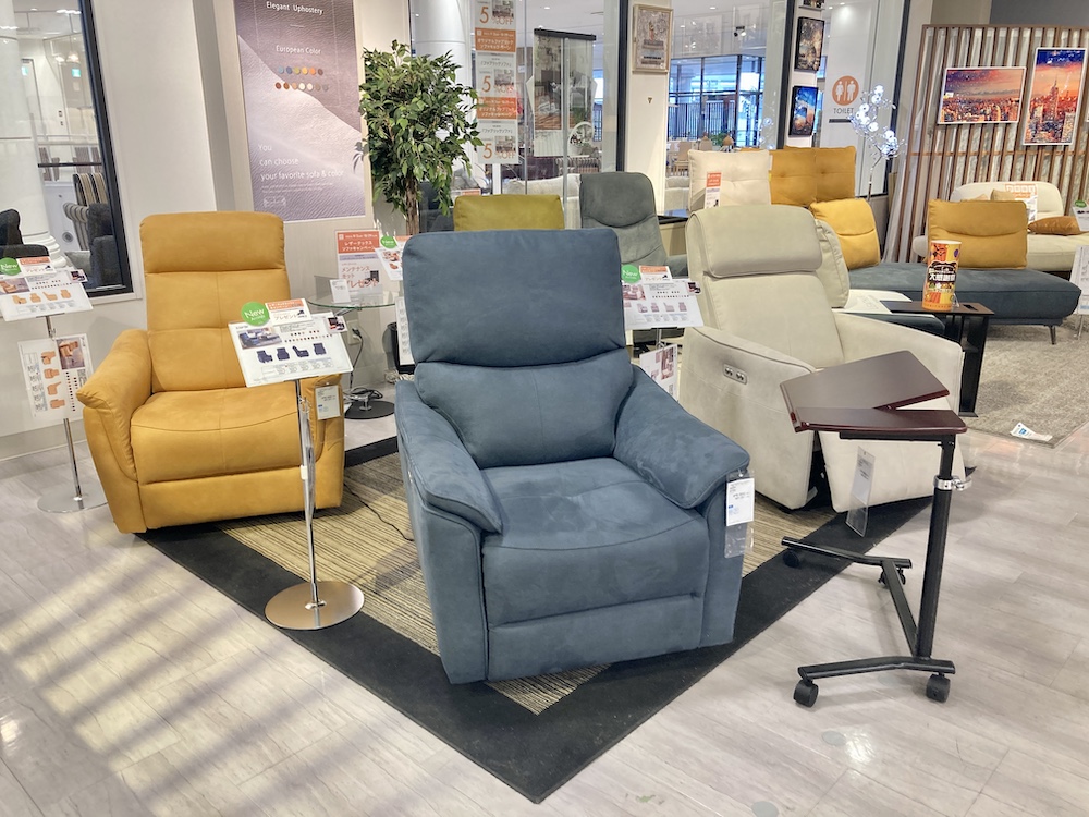 2階エスカレーター上がって左、レザーテックスソファ売場でお試しくださいませ。