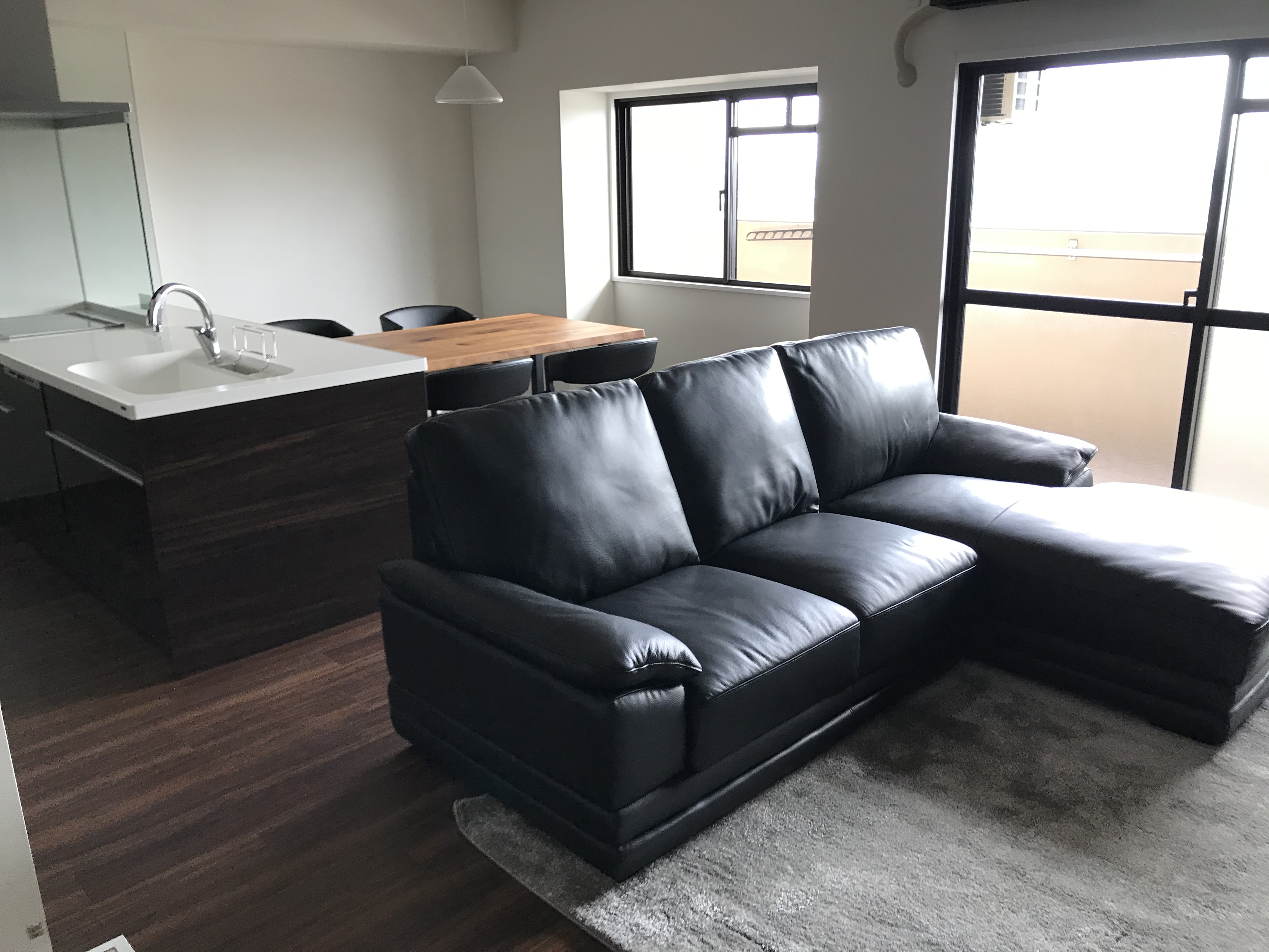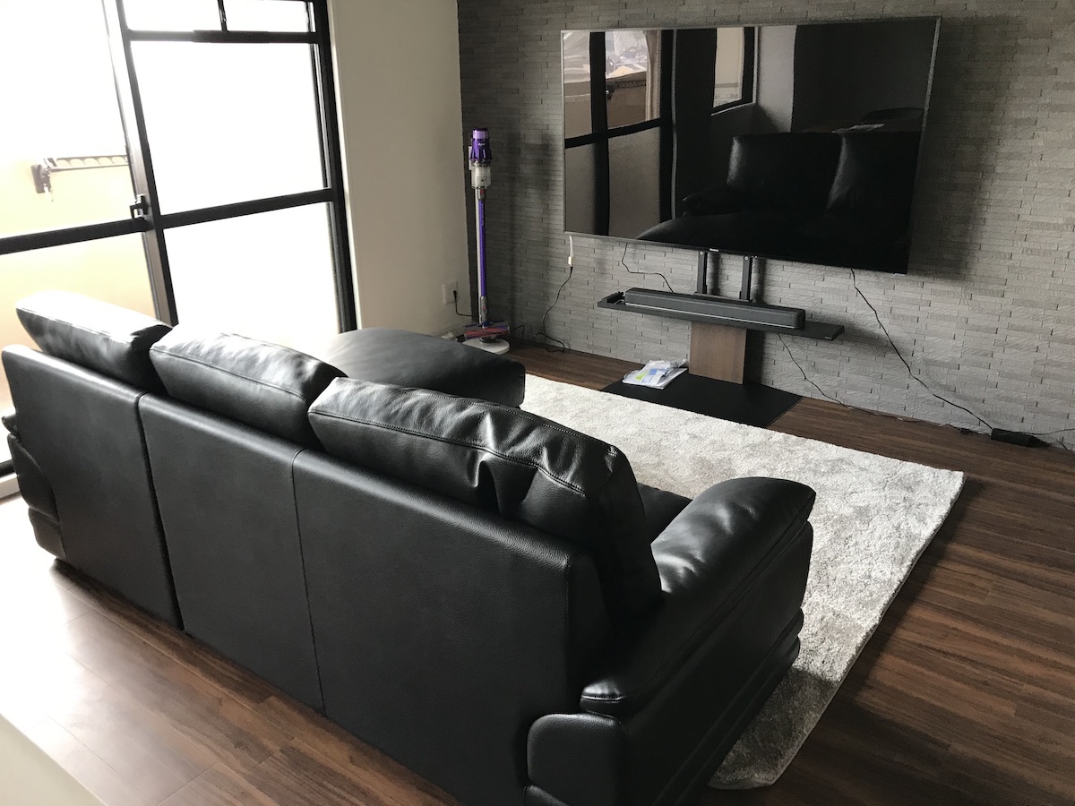 ご新築のリビングにはレザーソファと、合わせてラグもお届けしました!